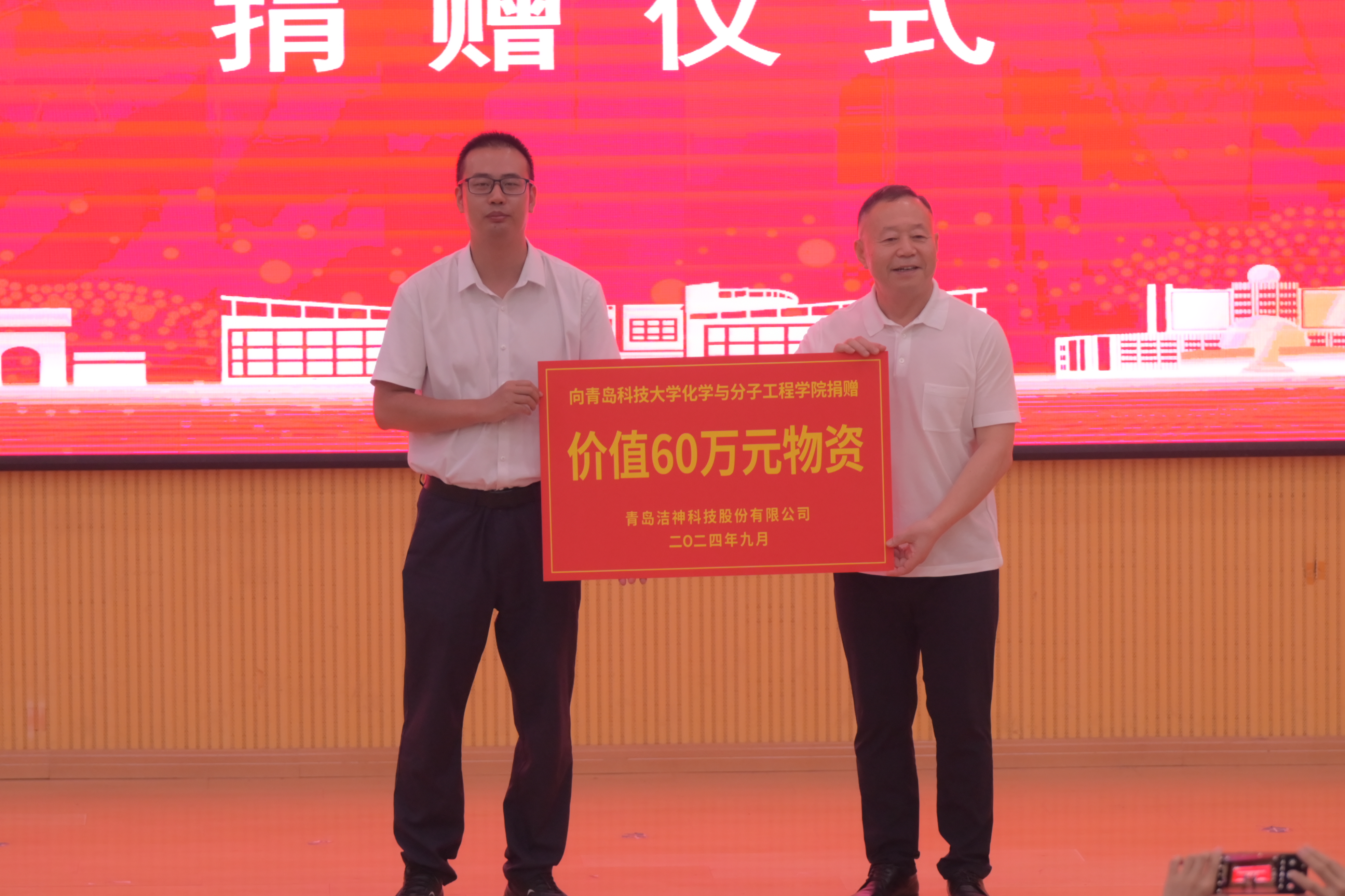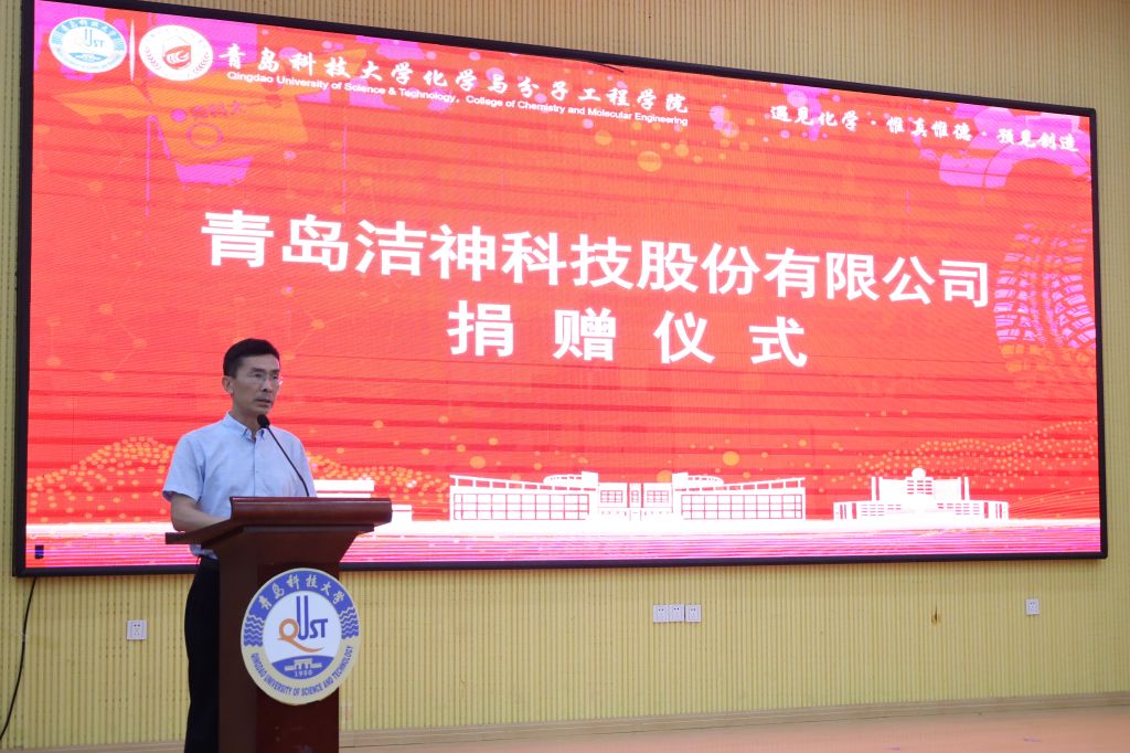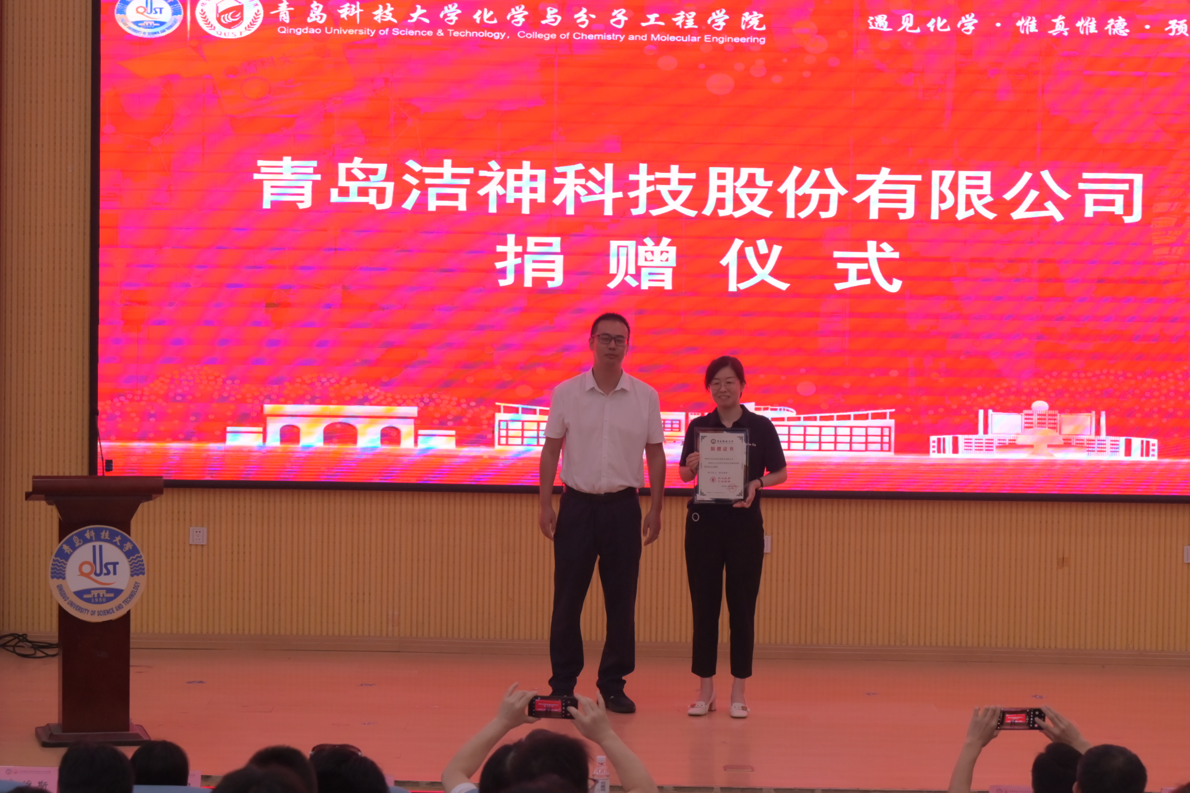 2024年9月10日,青岛洁神科技股份有限公司捐赠仪式在四方校区讲学厅举行,青岛洁神科技股份有限公司董事长孙善家、总经理刘晓静、青岛洁神生物科技有限公司总工苗燕、15vip太阳成党委书记肖强、常务副院长汪恕欣、重点实验室主任丁彩凤、副院长胡志强、郭维斯、党委组织员张同雷、教师代表以及学生代表参加捐赠仪式。仪式由学院党委副书记兼副院长刘尧主持。