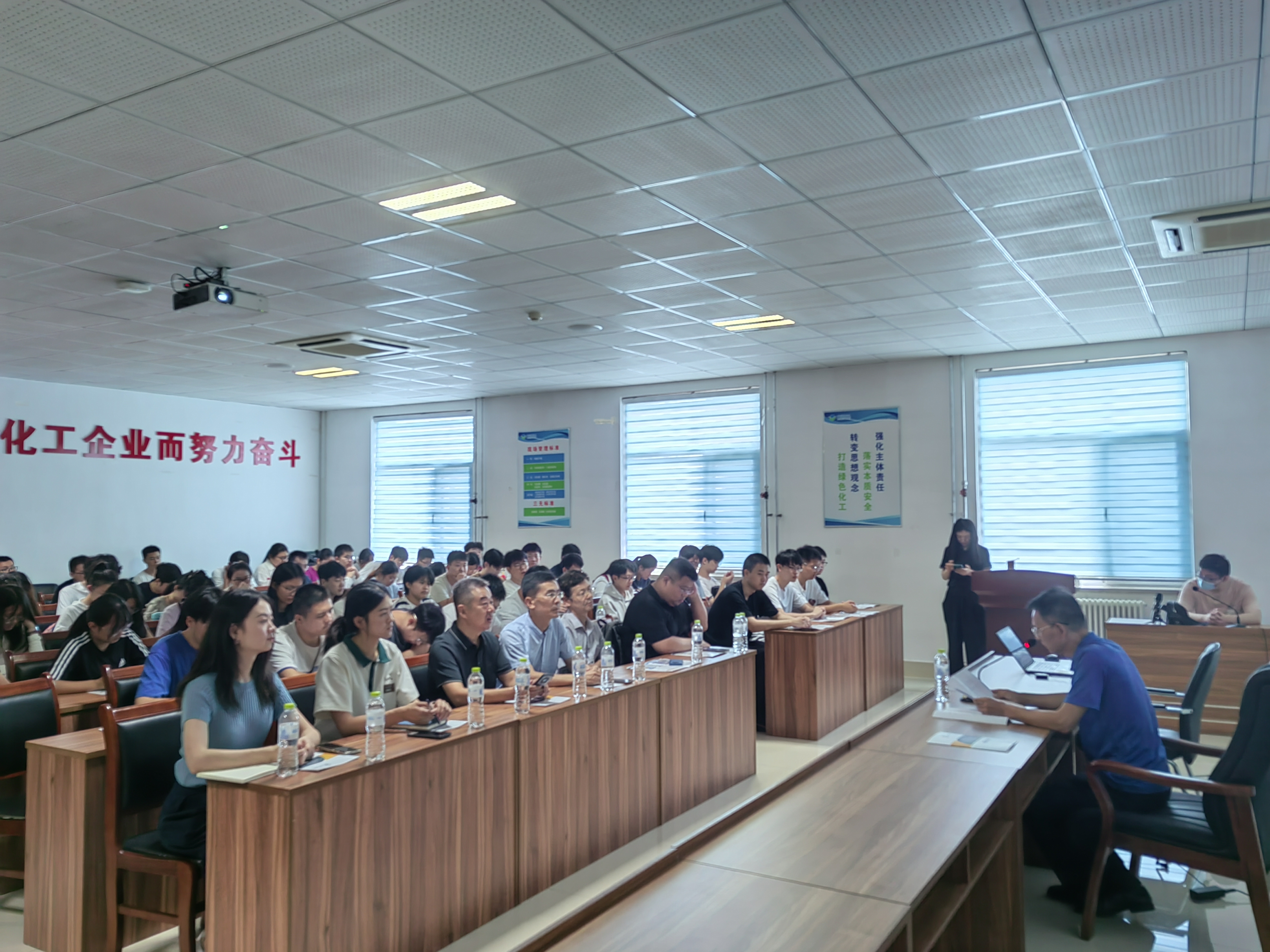 在南区热电厂一楼控制室内,厂区负责人向师生介绍了锅炉超低排放、动力保障以及民生供暖等系统的运行情况。而后,师生们前往二楼培训室,山东化工专业人才市场服务中心副主任王志刚推介了临淄,一个历史悠久、工业强大、文明和谐、充满活力的就业和创业之城。大家观看公司宣传片后,魏玲围绕公司发展历程、企业链产品以及人才需求招聘等方面进行具体讲解。