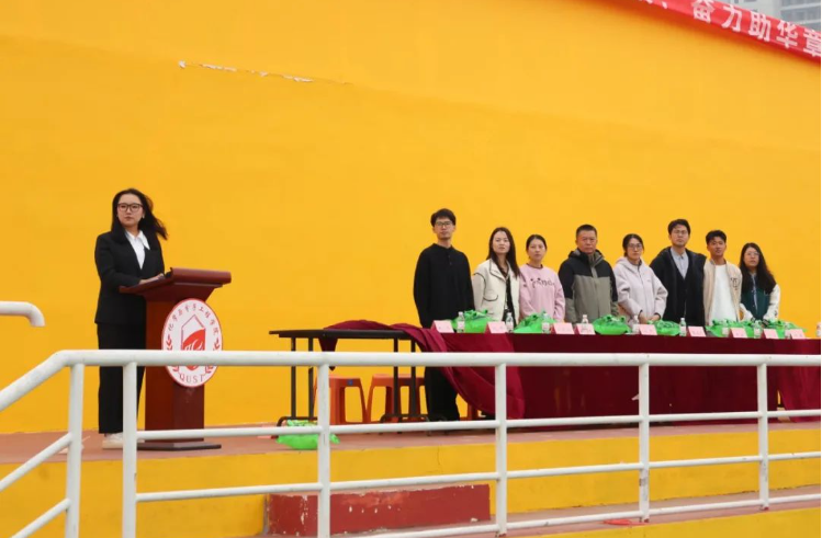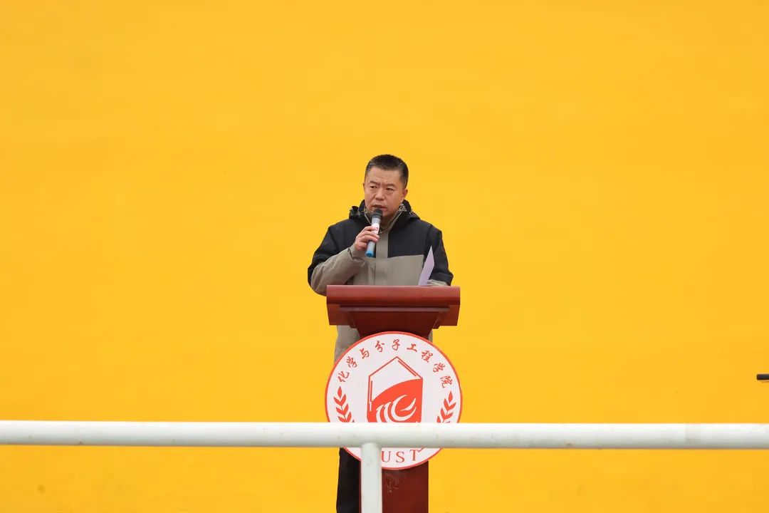 开幕式上,党委副书记兼副院长刘尧致开幕词,他表示希望通过本次运动会丰富同学们课余生活,丰富头脑、强健体魄,也希望同学们能够发扬“科大精神”、践行“橡胶品格”,并预祝本次运动会圆满成功。裁判员代表与运动员代表宣誓,表示将严格履行裁判职责、遵守比赛章程规定。国旗护卫队的同学手擎国旗、步履铿锵。辅导员陶亚亚老师宣布大会开幕,在迎风而飞的国旗与嘹亮的国歌声中本次运动会开幕。