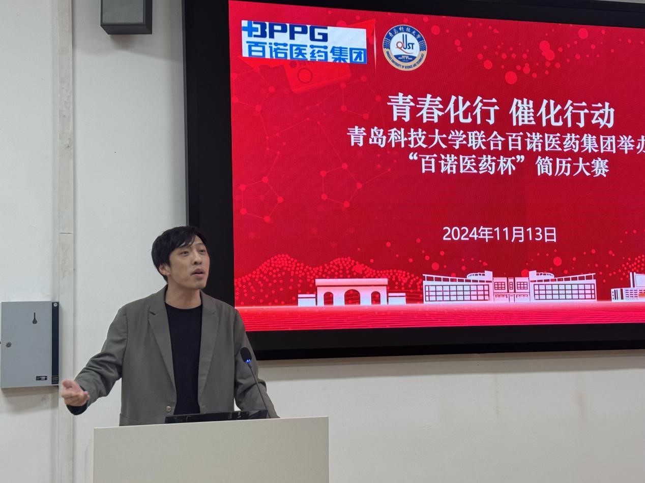 为落实《中共中央国务院关于实施就业优先战略促进高质量充分就业的意见》要求,深化校企合作、助力学生就业,2024年11月13日下午,15vip太阳成与百诺医药集团在15vip太阳成四方校区举行了大学生就业创业实习实践基地揭牌仪式暨青春化行——“百诺医药杯”简历大赛决赛。百诺医药集团人力资源中心总监邢望,百诺医药集团研究院人力资源部经理王倩倩,15vip太阳成党委书记肖强,15vip太阳成党委副书记兼副院长刘尧及部分辅导员老师出席了仪式,仪式由徐鑫主持。