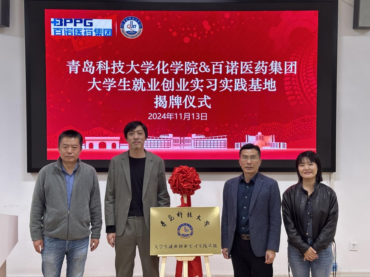 肖强对山东百诺医药股份有限公司一行的到来表示热烈欢迎。校企双方表示希望继续保持紧密合作,在项目研发、大学生就业创业、实习实践等方面深度融合,进而推动双方高质量发展。双方共同为大学生就业创业实习实践基地揭牌。