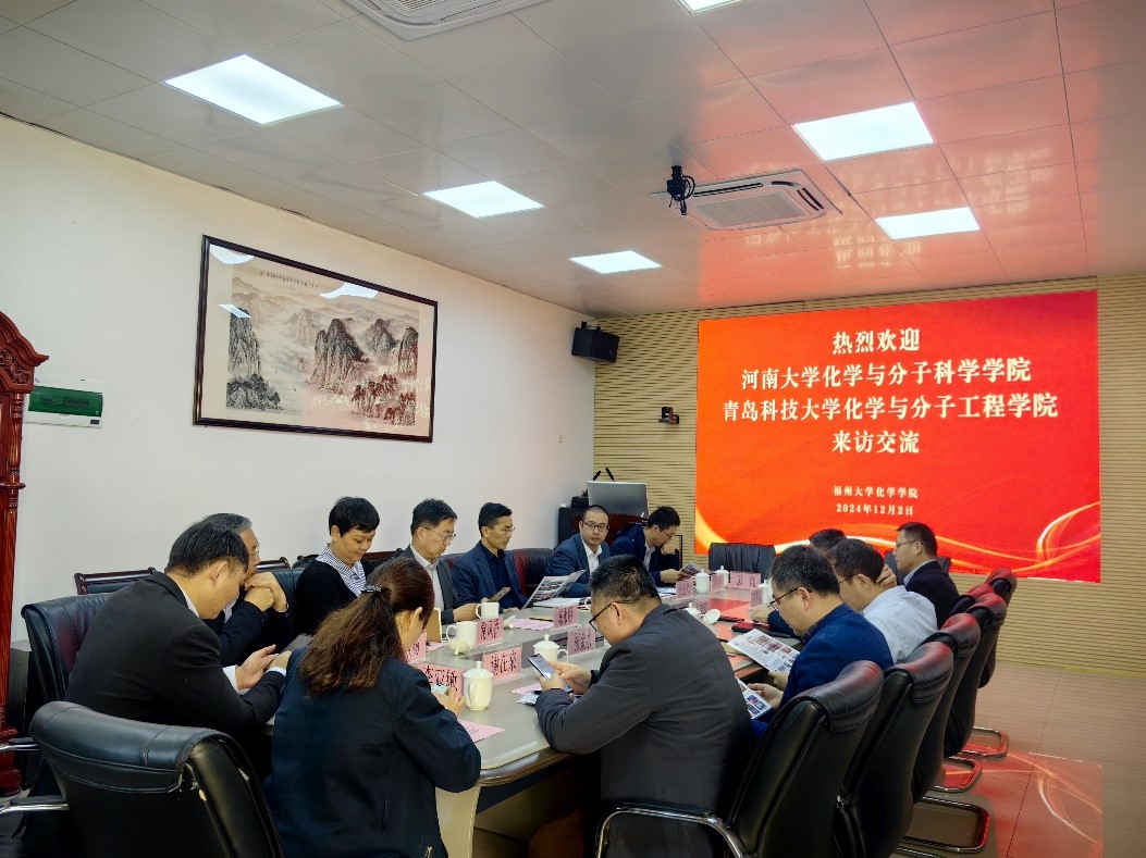 通过此次交流,双方在学科、教学、科研、人才培养和管理等方面进行了深入讨论,促进了校际合作。学院将积极学习借鉴福州大学校院两级改革先进经验,完善规章制度,优化资源配置,进一步为化学学科建设贡献力量。(通讯员:陶亚亚、张高鹏)