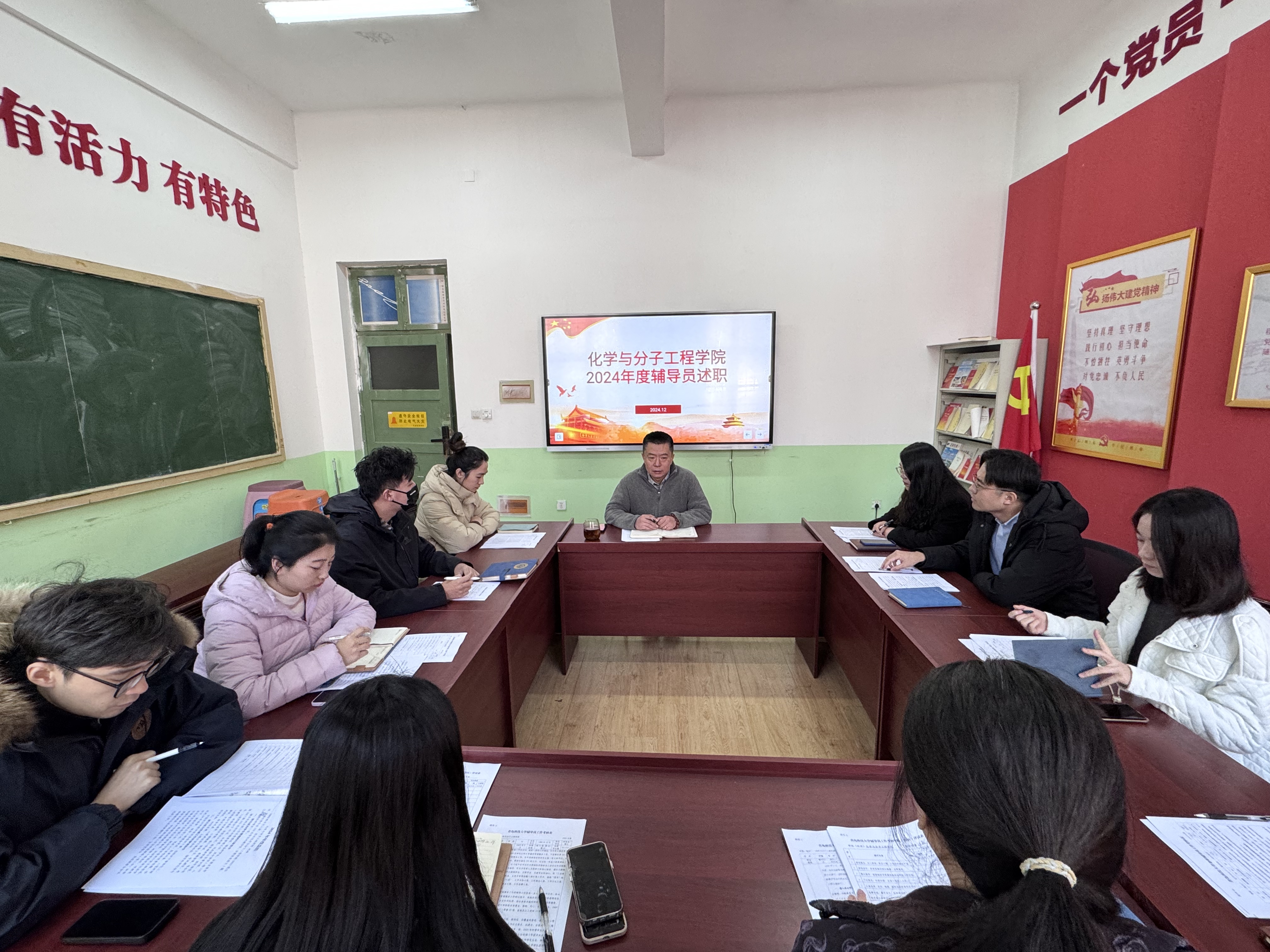 会上,学院各位辅导员围绕本年度的工作开展汇报,从工作经历、思想引领、工作特色、实际成效、研究成果等多个方面阐述工作思路,总结工作经验,凝练工作特色,突出工作亮点,展现了我院辅导员以生为本、潜心育人的优秀品质和“化合引领、遇见化学、惟真惟德”工作品牌。其中,刘尧书记总结了本年度我院辅导员在学科知识、理论武装、学生工作和团队建设方面取得显著成就。通过积极参与培训、宣讲、学科研究和学生就业创新,不仅提升了个人素质,还在学科发展和党建工作中做出卓越贡献,展现了较高的工作水平和综合能力。