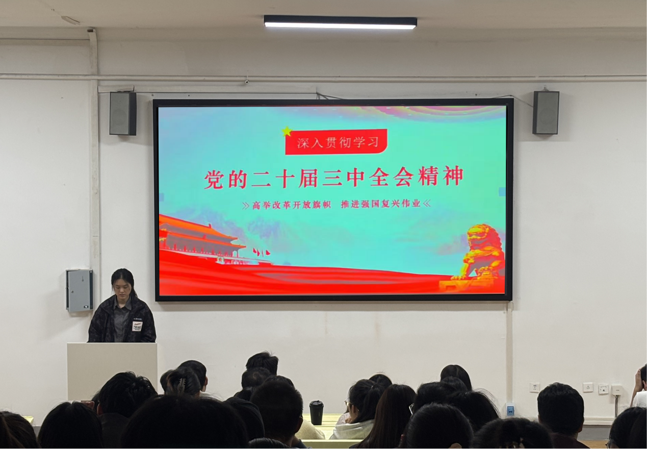 徐鑫老师围绕党的二十届三中全会精神的核心内容,结合青年学生特点,作了一场生动的专题报告。她从理论高度与实践深度两个维度,为学生骨干们深入解读了全会精神的内涵与时代意义。她指出,全会提出的新目标、新要求为新时代青年指明了奋斗方向,研究生作为国家高层次人才培养的重点,应在学习贯彻全会精神中走在前列、做出表率。