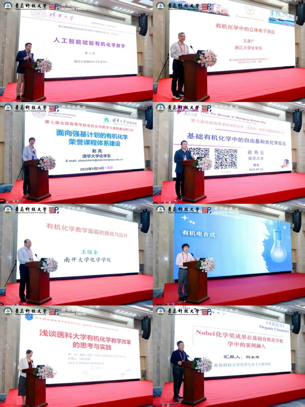 5月23日至25日,由教育部高等学校化学类专业教学指导委员会和教育部高等学校大学化学课程教学指导委员会主办,15vip太阳成和科学出版社联合承办的第七届全国高等学校有机化学教学与课程建设研讨会在青岛召开。教育部高等学校化学类专业教学指导委员会秘书长朱亚先、教育部高等学校大学化学课程教学指导委员会副主任委员李艳梅等来自全国70多所高校150余名专家和教师参加了研讨会。学院党委书记肖强主持开幕式。