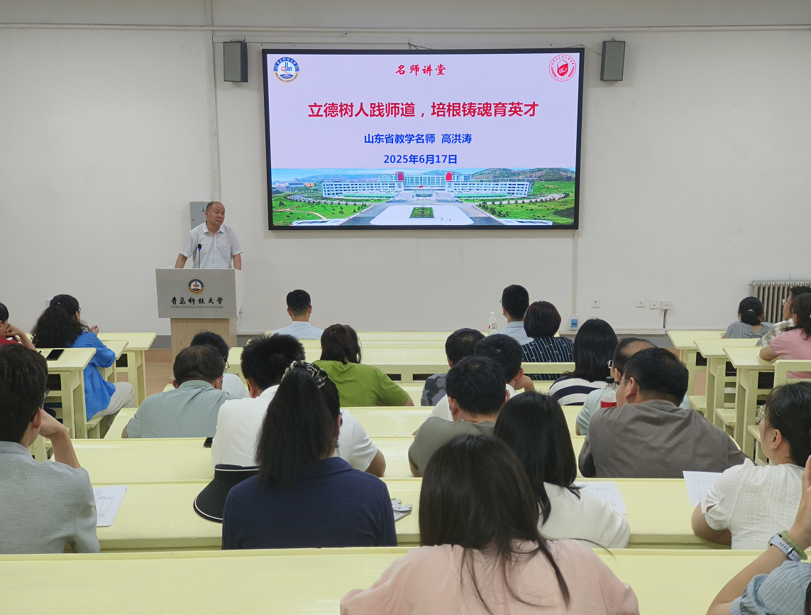 6月17日,学院举办名师讲堂专题活动,邀请山东省教学名师高洪涛教授作《立德树人践师道 培根铸魂育英才》专题讲座。学院党委书记肖强、副院长郭维斯、教师代表出席活动。