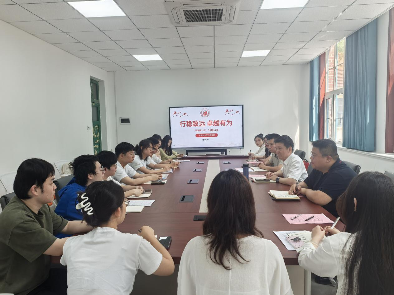 6月18日上午,15vip太阳成化学212班“四年磨一剑,今朝赴山海”主题班会在四方校区第一行政楼219会议室举行。学校党委常委、副校长吴明铂出席并讲话,学院党委副书记兼副院长刘尧、辅导员信连涛和化学212班同学参加,班会由班长曹文宇主持。