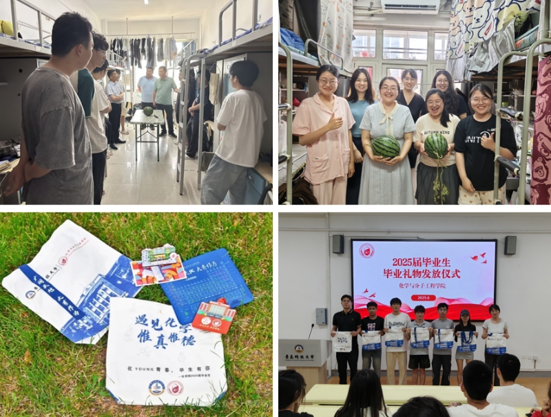 赠礼寄情长。6月20日,学院领导、全体辅导员深入宿舍,走访慰问毕业生,祝福同学们在未来的人生舞台上开启新的篇章,学院为每位毕业生都准备了“独家定制”的礼物:个人专属登机牌钥匙扣,希望同学们到祖国最需要的地方发光发热;化学周期表鼠标垫,突出学院专业特色;“一政”特色建筑行李牌,祝愿化院学子毕业一路顺风;院训专属定制摆件,饱含学院对学子的殷殷嘱托;“遇见化学”帆布包,包下所有青科青春记忆和未来所有美好。定制的专属礼物,饱含学院和老师们对毕业生深深的情意与祝福,祝愿2025届毕业生踔厉奋发、砥砺前行,将青春之花热烈绽放在祖国各地。