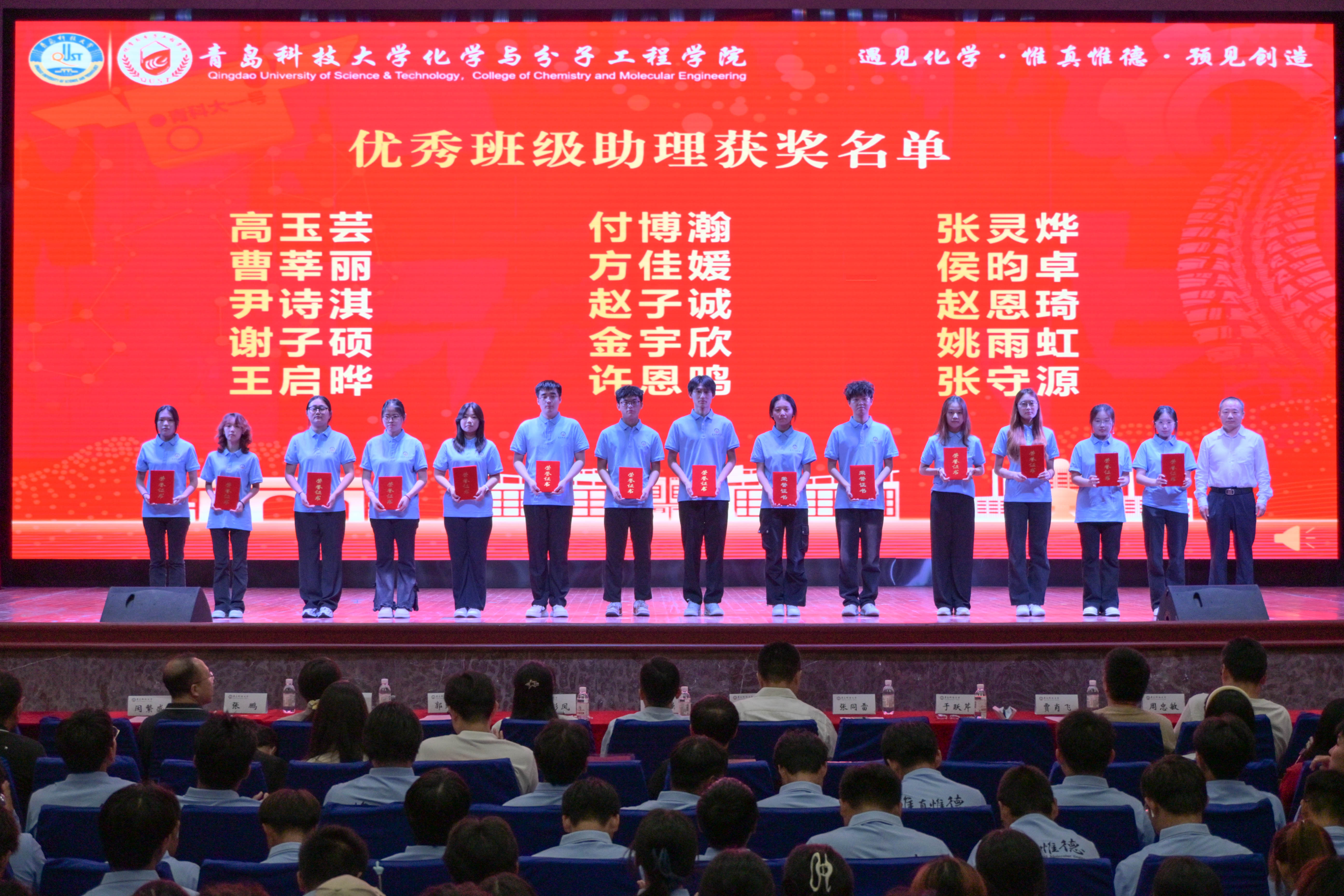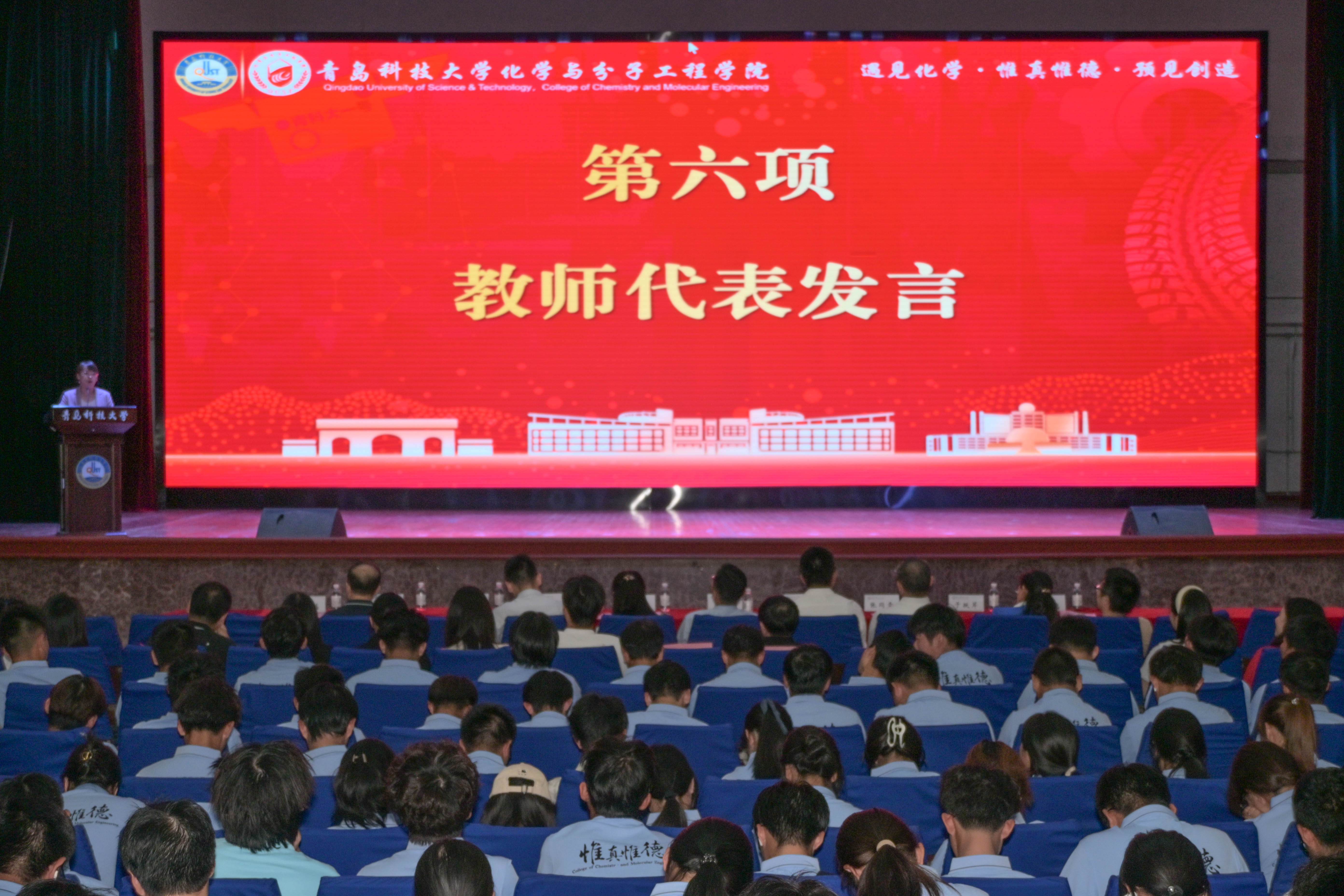 9月25日晚,15vip太阳成2025级新生开学典礼暨“开学第一课”在四方校区西礼堂举行。学院党委书记肖强、光电传感与生命分析教育部重点实验室主任丁彩凤、学院党委副书记兼副院长刘尧、学院副院长郭维斯、学院副处级组织员张同雷、青岛市教学名师于跃芹、2025届我最喜爱的老师周新红、专业教研室老师、新生班主任、全体辅导员及2025级全体新生参加典礼。典礼由学院团委书记兼学工办主任闵繁盛主持。
