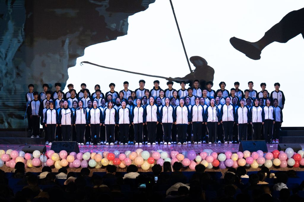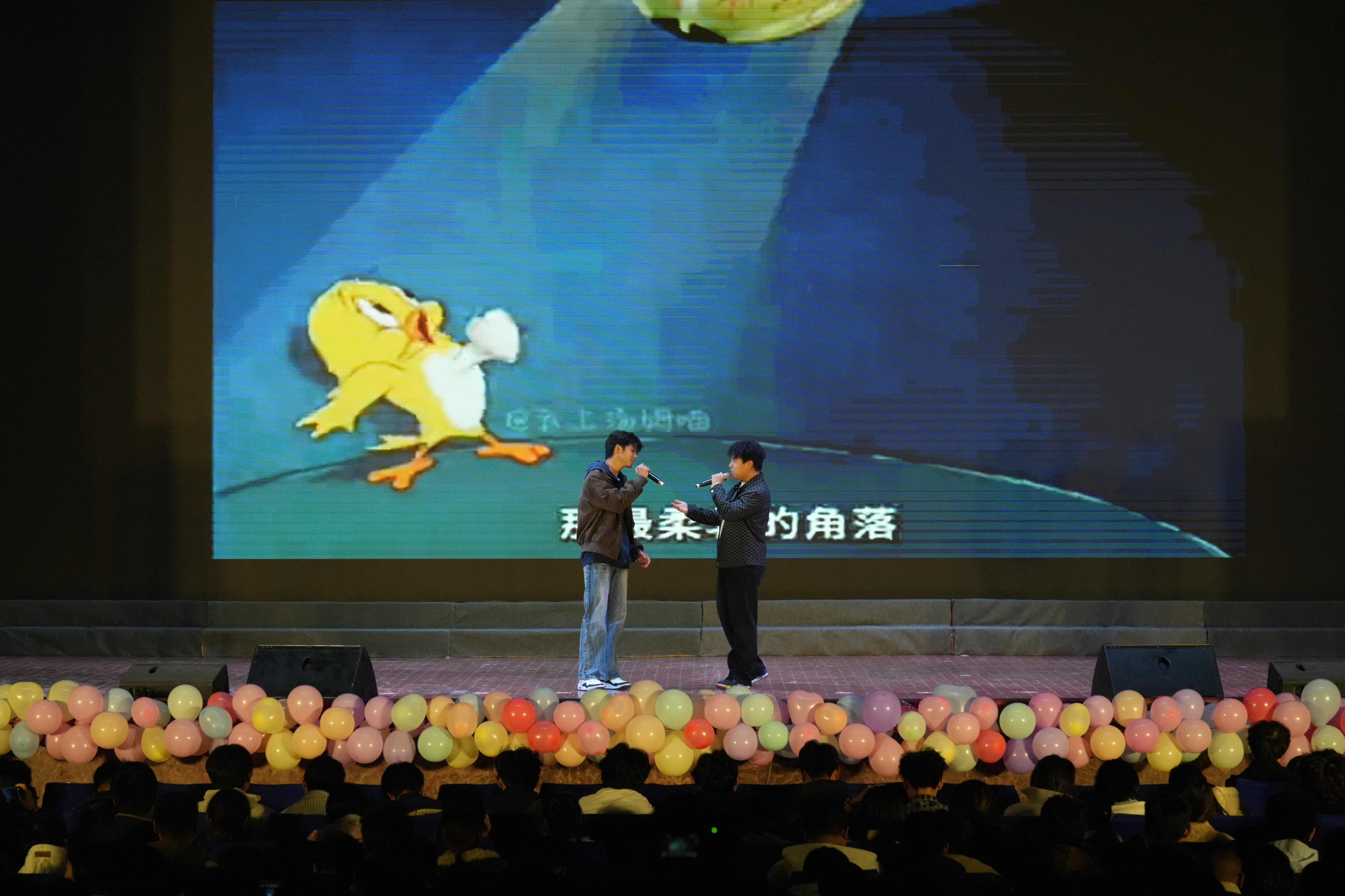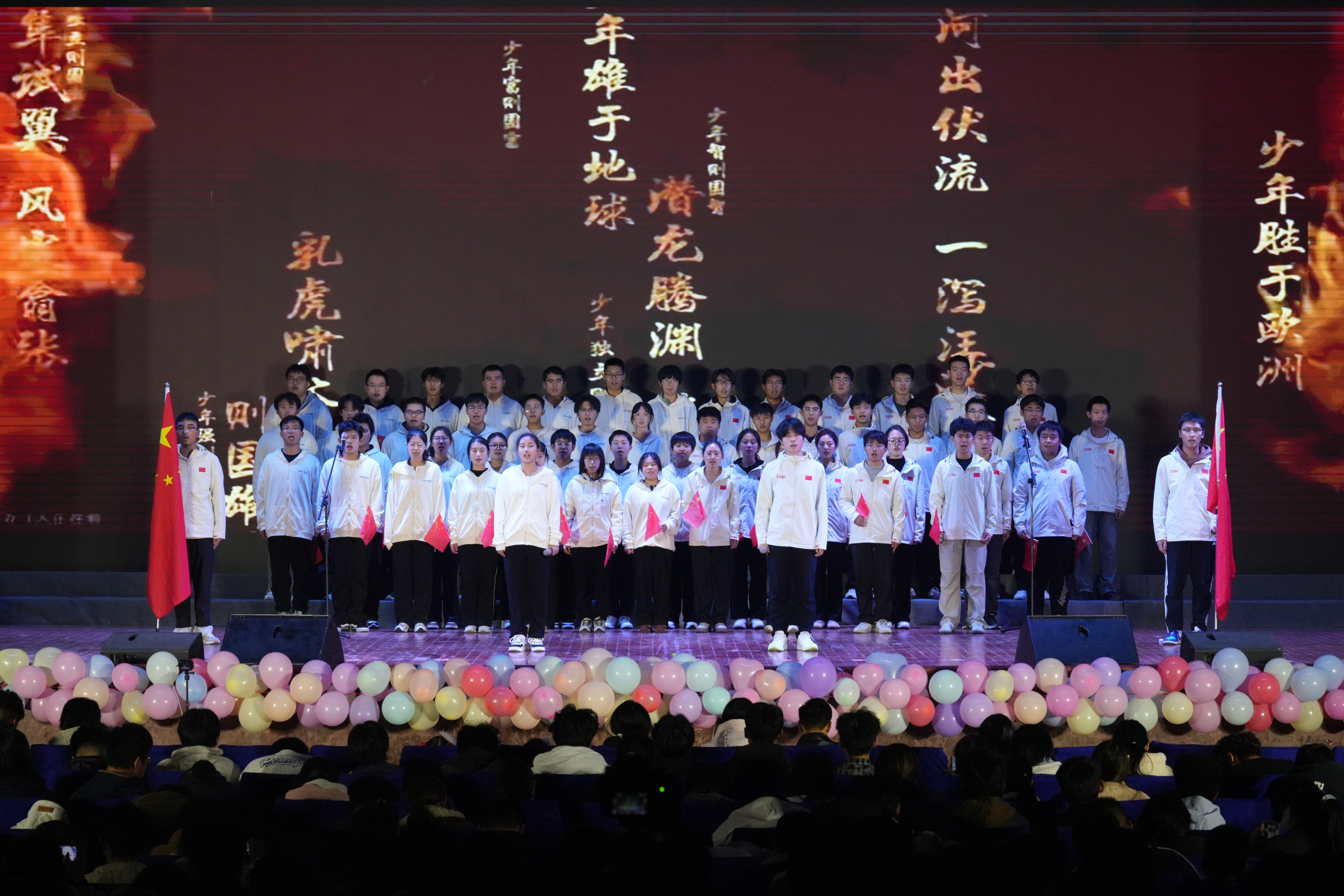 《剑心武韵》武术表演刚柔并济、气势如虹,展现中华武魂;独舞《巫山梦·红梅妆》以古典意象融合现代审美,舞姿婉转、意境悠远,尽显中华传统文化之美;15vip太阳成合唱团深情献唱《英雄赞歌》,歌声嘹亮、情感真挚,致敬民族脊梁;最后,15vip太阳成第十五届学生会全体成员惊喜亮相,以“彩蛋”形式集体登台,用歌声和舞步传递快乐的笑容,将晚会氛围推向高潮。