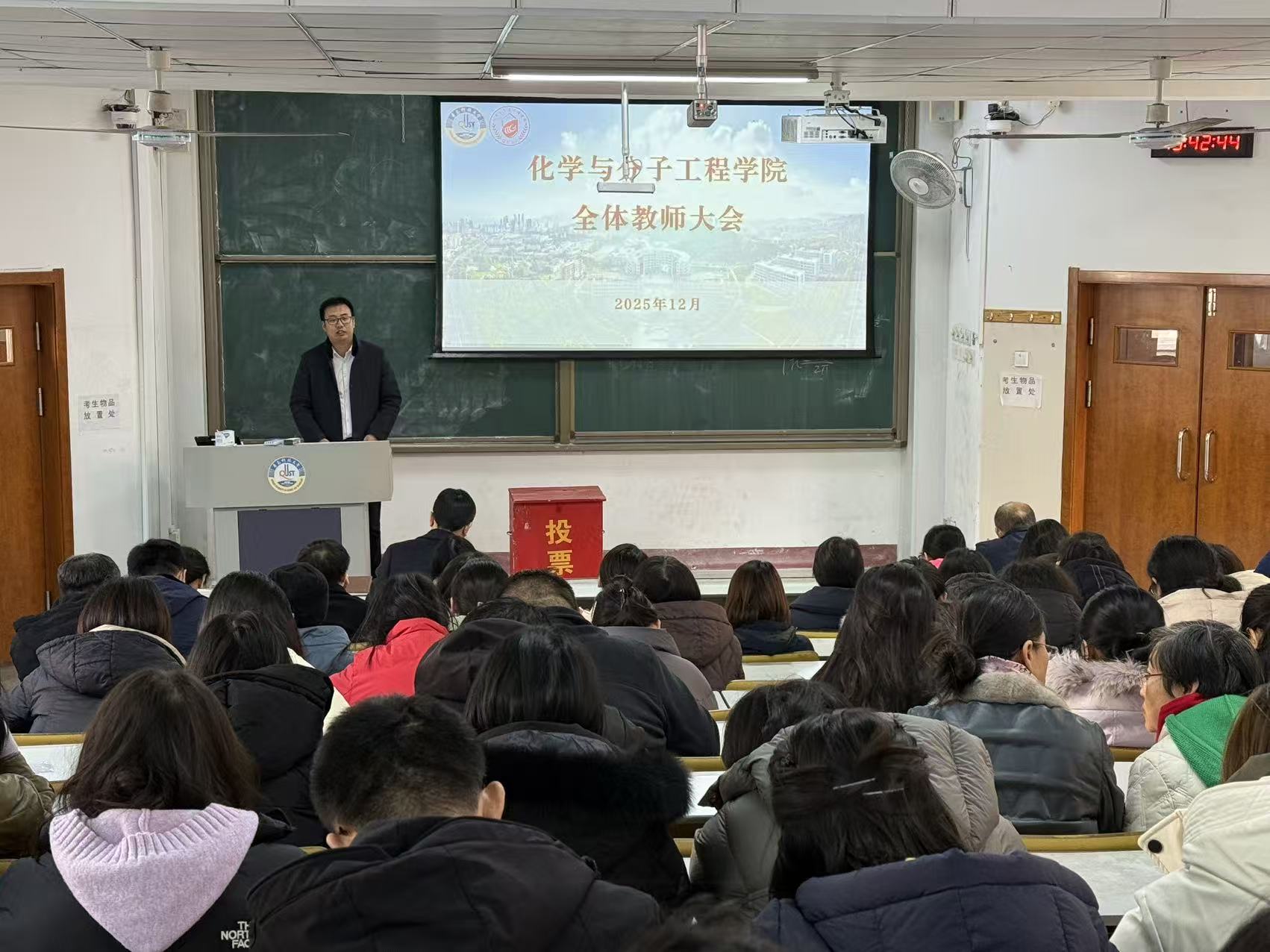 12月30日,学院在第二教学楼117教室召开全院教职工大会,全面总结2025年度各项工作,安排部署期末重点任务。学院党政领导班子成员、全体教职工参加会议,会议由学院党委书记肖强主持。