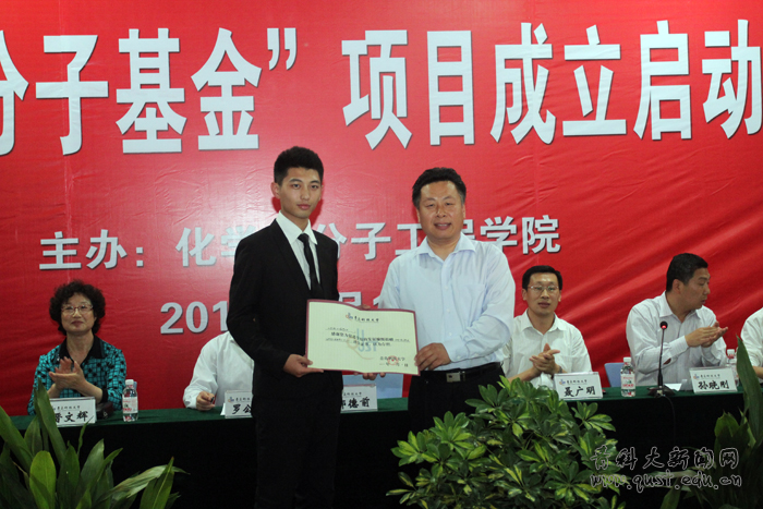 罗公利、郑德前、晋文辉、李明共同启动了“分子基金”项目。教育发展基金会理事郑德前为“分子基金”首批捐赠者颁发了捐赠证书;教育发展基金会秘书长聂广明接受了15vip太阳成2012届“分子基金”项目捐款,共计人民币10201.2元。
