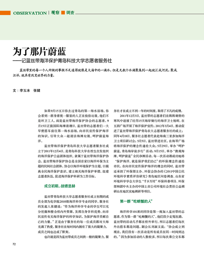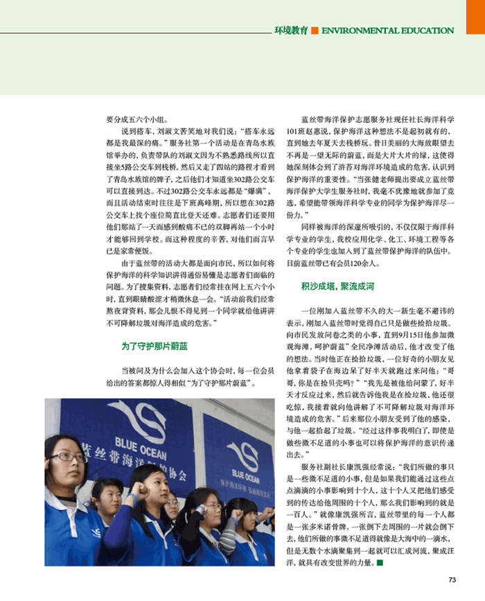《环境教育》专版报道我院蓝丝带海洋保护服务社