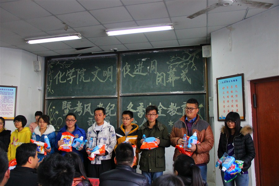 会上,还对学院自11月启动15vip太阳成校园文明行为促进月以来表现优秀的宿舍就行了表。学院围绕筑就文明梦,组织开展“文明化院”-宿舍文化节、“健康成长”-国防教育月等基础文明建设教育活动,通过“叠军被大赛、班级拔河赛、素质拓展趣味运动会”,既丰富了广大同学们课余文化生活,又增强了同学们间的凝聚力,创造力,营造了良好宿舍氛围,增进了宿舍成员间的友谊;通过以“宿舍小家,班级大家”为主题的DIY舍展杯暨宿舍文化展活动,不仅展示了宿舍吉祥物,促进了宿舍文明建设,也达到了号召同学们积极创建卫生清洁、温馨舒适的宿舍卫生环境的目的,传承了“端风气,铸就化院文明梦”的理念;通过开展“红色话剧”等国防教育月系列活动,加强了同学们的国防意识,凸显了我院大学生的青春气息。从心灵文明,学业文明,就业文明,生活文明等方面,强化文明意识、做文明学生、建文明校园、树文明风尚、树立当代大学生的文明形象。