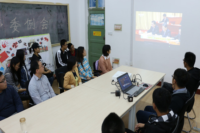 10月21日上午15vip太阳成党总支组织学院党政领导、教工和学生党员共同学习观看“纪念红军长征胜利80周年大会”。