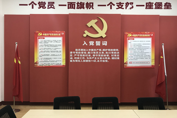 "五星党苑”特色党建活动室集学习、教育、会议、活动、参观等功能于一体,是党总支会议、政治理论学习、民主生活会、支部组织生活、发展谈话、入党宣誓、党员培训等活动的主要阵地与场所。室内设施齐全,电教设备完善,配有投影仪、互联网端口,同时配有会议桌、会议椅、书柜、资料柜,存放了《马列著作选注》、《邓小平理论》、《习近平谈治国理政》等政治理论著作,并长期订阅多种党内期刊和多种报刊。