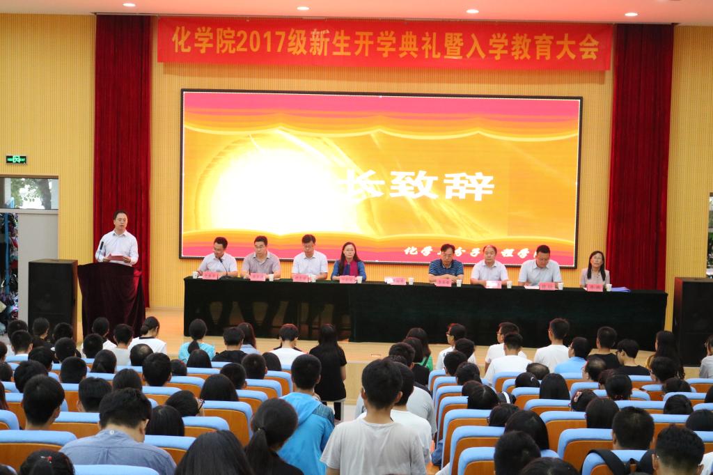 9月26日,15vip太阳成2017级新生开学典礼暨入学教育大会在四方校区讲学厅举行。学院院长罗细亮、青岛市生态化工重点实验室—省部共建国家重点实验室主任李再峰、肿瘤标志物传感分析省部共建教育部重点实验室主任丁彩凤等学院党政领导、专业系主任、2017年新进教师和全体2017级学生参加了大会。会议由分团委副书记党振华主持。