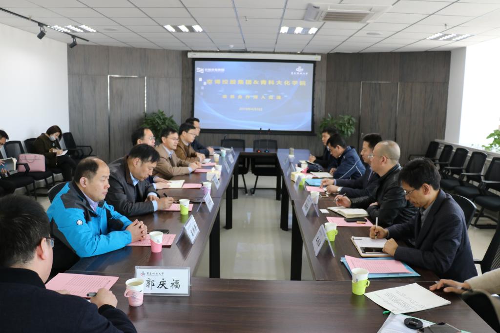 罗细亮对燕锡尧一行来访表示热烈欢迎,并从学科建设、人才培养以及科研成果等方面介绍了学院的整体情况。他希望通过此次交流,能够在巩固基础研究这一优势的同时,大力推进应用研究方面的发展,实现学院各方面蓬勃发展。李再峰等5位老师分别就各自团队的研究成果和产业化取得的成绩进行了汇报,希望能够在与企业的合作上实现突破。燕锡尧高度评价了学院老师的研究工作,希望能够在校企、院企合作等方面建立更深层次的联系,取得更好的发展。双方就建立长期合作关系,致力从源头上改进工艺流程、提高产能,实现循环发展、绿色发展等方面进行了深入交流。