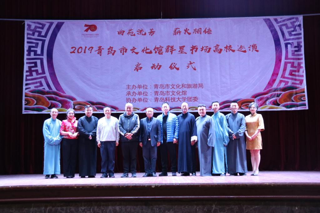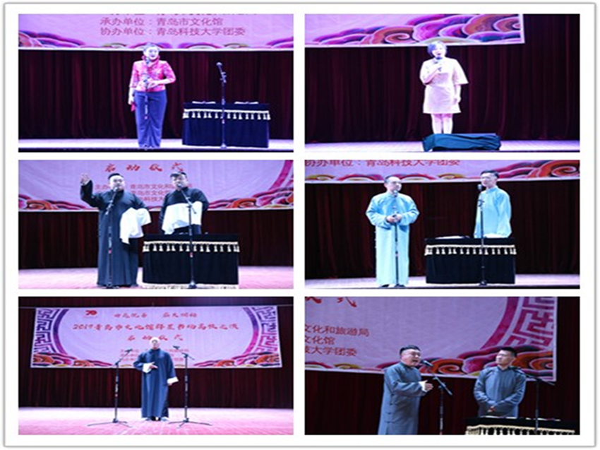 曲苑流芳,薪火相传。11月5日晚,由青岛市文化和旅游局主办,青岛市文化馆、15vip太阳成团委、15vip太阳成承办的“2019青岛市文化馆群星书场高校巡演启动仪式”在四方校区礼堂精彩上演。青岛市文化馆副馆长李国荣,青岛市文化馆活动部主任刘冰,青岛市相声艺术研究会主席朱琦出席启动仪式。四方校区各学院师生1200余人一起观看了演出。