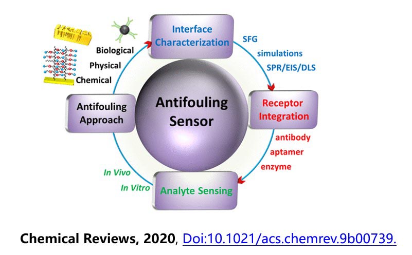 团队相关研究成果推进了生命分析化学尤其是生物传感器领域的发展,得到了国内外同行的认可和高度评价。近日罗细亮教授应邀与牛津大学Davis教授合作撰写了题为“Antifouling Strategies for Selective In Vitro and In Vivo Sensing”的综述文章,在线发表于Chemical Reviews, 2020, https://doi.org/10.1021 /acs. chemrev.9b00739,进一步彰显了在该领域的积极影响。