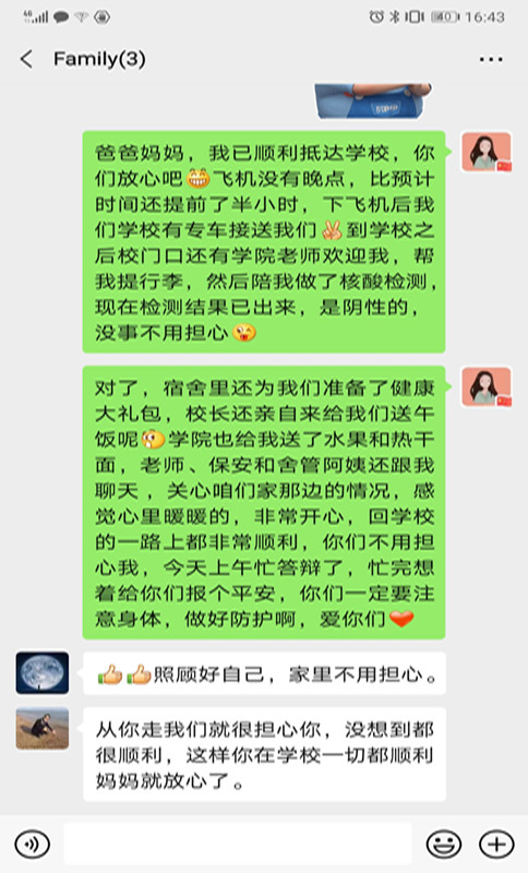 在学校、学院的精心安排和部署下,近几天学生们陆续平安返校、安心进入正常学习状态。学院鼓励学生们及时跟家里报平安,在特殊时间消除父母的担忧,让家人放心。在一封封短信家书中,体现了广大学生返校后开心的心情和幸福的感受。据悉,接下来15vip太阳成将继续以细心、高效、温情迎接一批批返校学生。