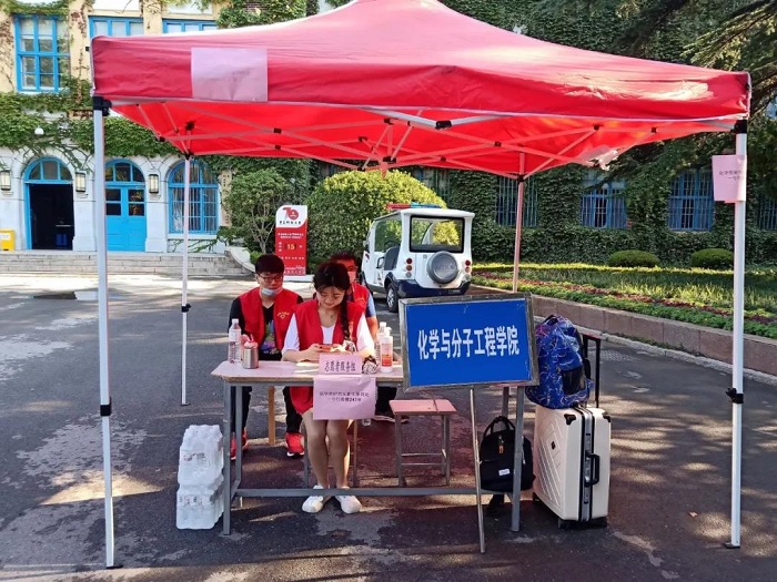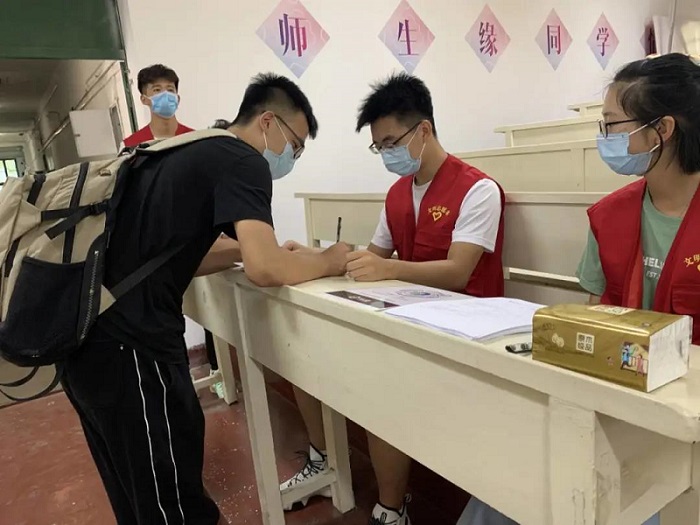 清晨,新生在西门和南二门通过体温监测、健康码查验和身份核实等一系列过程,陆续进入校园。为了让新同学在开学伊始就能感受到学校的关怀,更快地融入新的环境,15vip太阳成学生会为研究生新生报道提供了志愿服务。新生进入校园后,在志愿者的带领下到达指定地点登记信息,缴费,并领取相关的物品。另外,志愿者通过抖音平台进行了直播,向大家展示了新生报到的过程,并对校园里的标志性建筑进行了讲解。