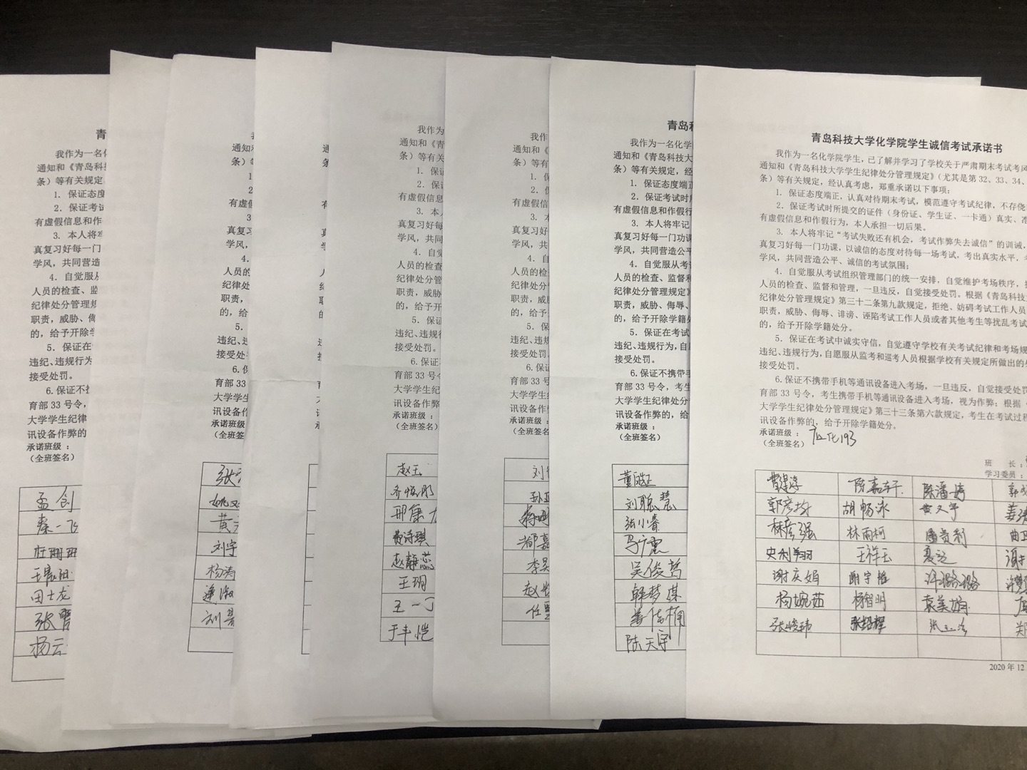 会后,2019级全体同学共同签署了诚信考试承诺书。