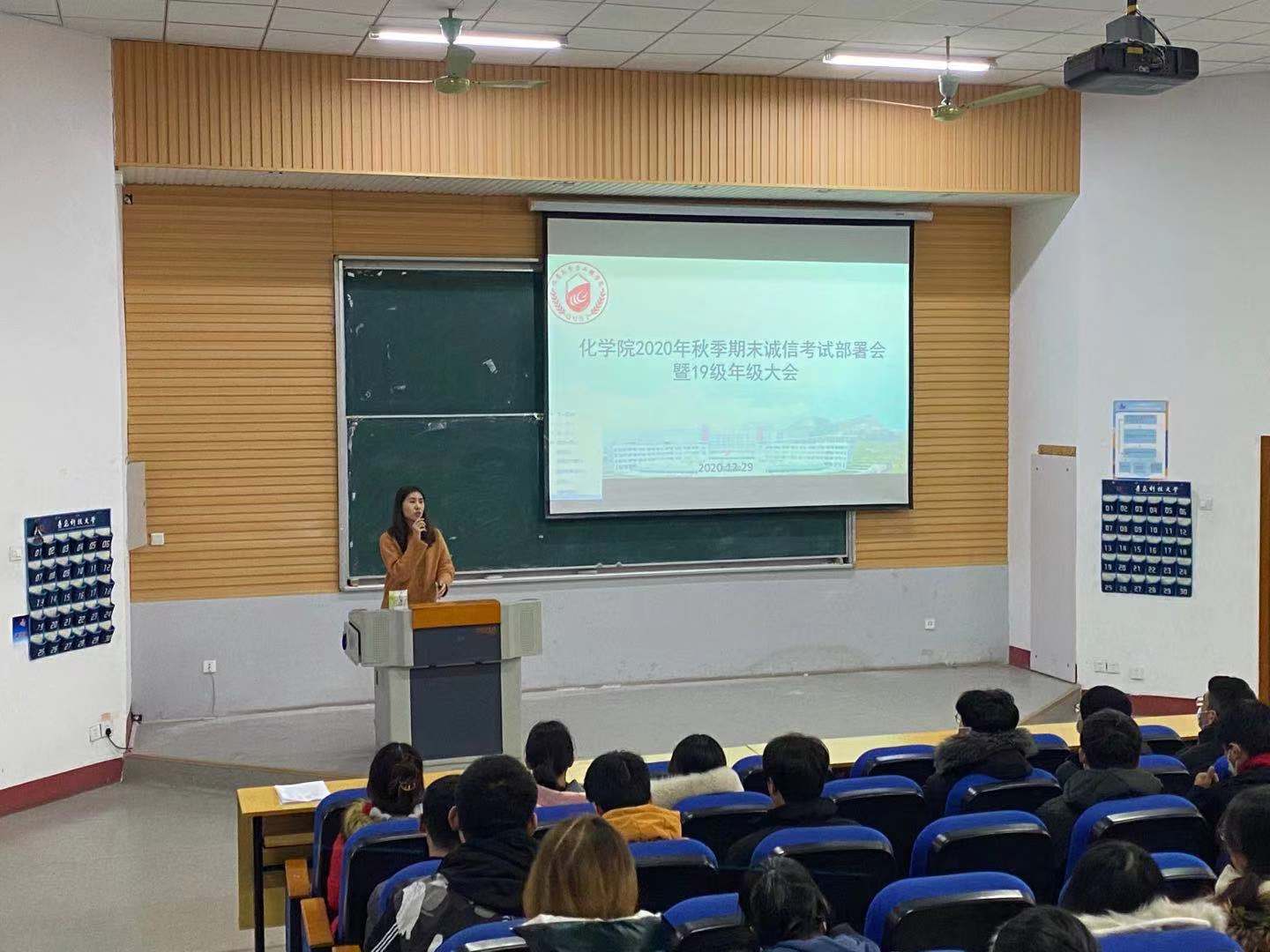 12月29日,15vip太阳成在二教101举行2020年秋季期末诚信考试部署会暨2019级年级大会。2019级辅导员刘施施主持本次会议,兼职辅导员王森、15vip太阳成2019级全体本科生参与会议。