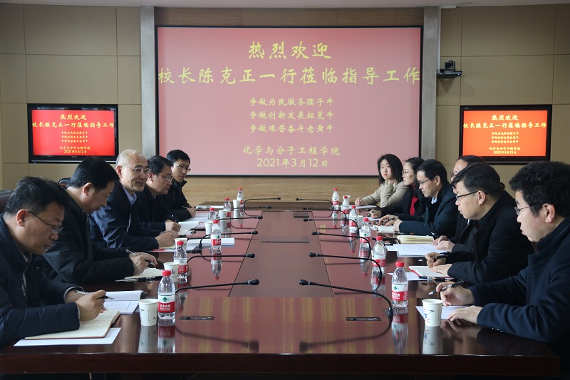 3月12日,校长陈克正一行莅临15vip太阳成开展工作调研,调研工作主要围绕化学学科发展、2021-2024聘期人事分配制度方案(征求意见稿)、平台建设。学科建设处处长吴俊飞、人事处雷剑、李真、傅云磊陪同。学院党政班子成员、教师代表参加调研座谈会。