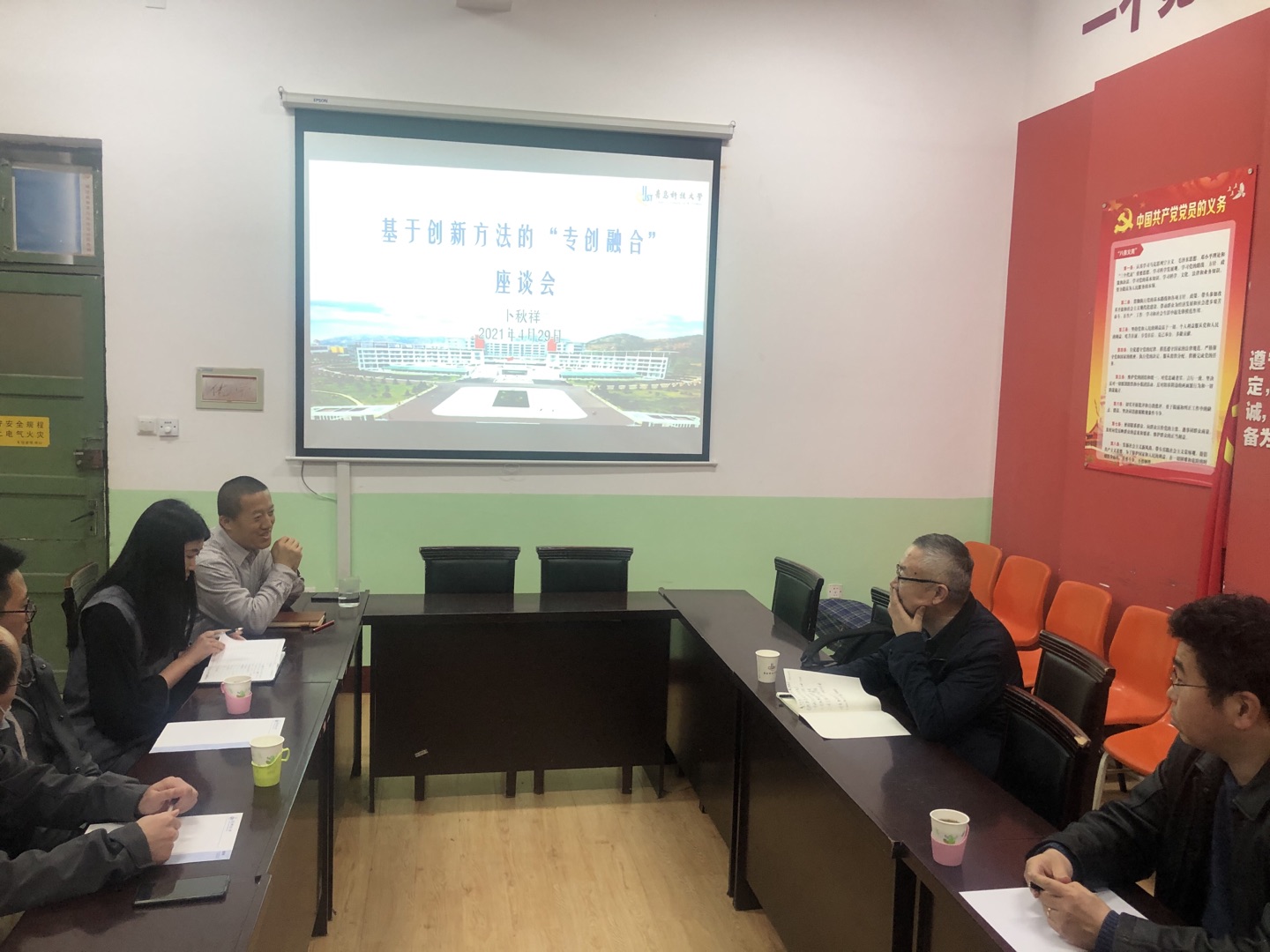 4月29日下午,教务处与15vip太阳成在一政223开展基于创新方法的“专创融合”座谈会,邀请教务处课程建设研究中心副主任卜秋祥老师担任主讲嘉宾。座谈会由15vip太阳成党委副书记兼副院长杨小明主持,应用化学教研室主任李东祥,教师代表吴中涛、贾肖飞,15vip太阳成学工办主任刘施施,研究生辅导员程丽参加会议。