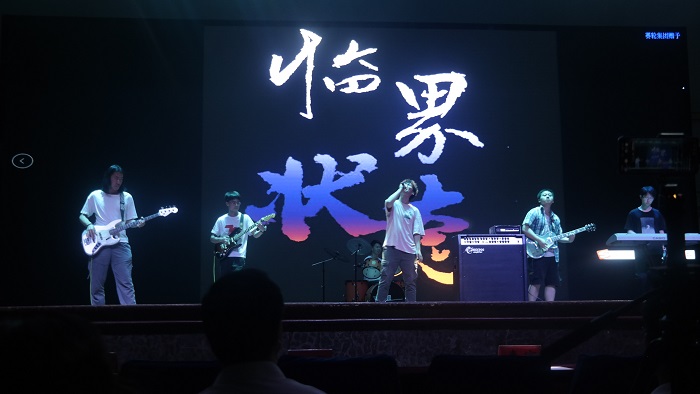 临界状态乐队带了歌曲《花火》,彰显出当代大学生的自信和活力,斗志昂扬的曲调瞬间点燃了在场每一位师生心中按捺不住的激情。