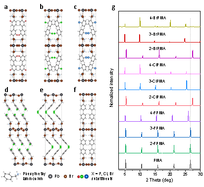 图一、钙钛矿晶体原子结构示意图与X射线衍射图谱。