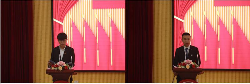 第十一届学生会主席团代表刘朋杰同学宣读大会倡议书《奋进新时代 启航新征程》,倡议学院全体学生坚定理想坚守信念,努力学习积蓄知识,锻造青年英姿,勇于担当敢于创新,厉行节约践行节约,努力践行社会主义核心价值观,切实投身到新时代社会主义事业的伟大实践中!