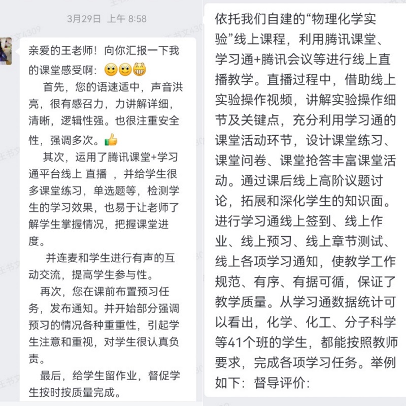 与会老师一致认为,在严格遵守疫情防控常态化背景下校园半封闭化管理的前提下,认真研究实验课程规律和青年学生成长成才规律,首先按照原有课程表顺序正常开展线下授课,针对线上授课期间的、相对独立的实验操作根据时间进度有序安排补课。