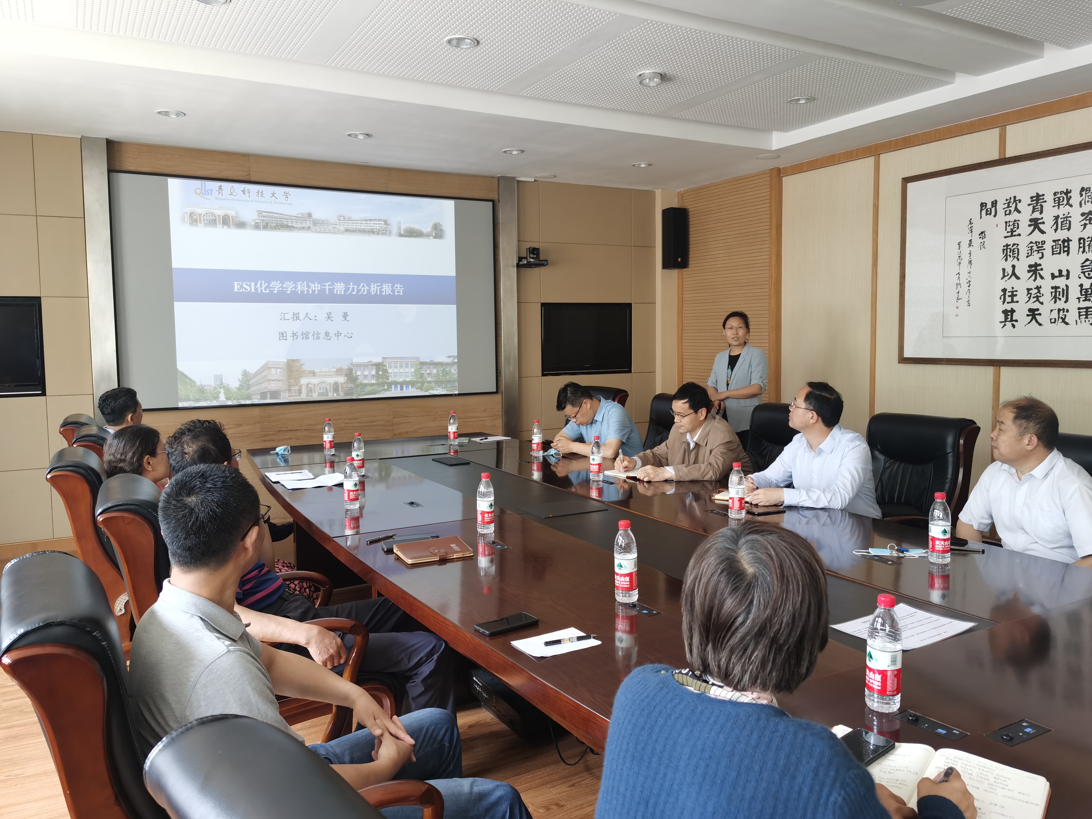 随后信息中心吴曼副主任做了题为《ESI化学学科冲千潜力分析》的报告。报告从数量分析和结构分析两个角度对化学学科冲千潜力、化学学科发文作者、合作机构以及化学学科ESI期刊几个方面进行了详细的介绍。信息中心一直秉持着发挥“领导决策参谋、部门执行助手”的工作理念。围绕学校重点学科建设提供科研绩效、学科竞争力分析、潜力学科分析等评价报告,力图加强学科发展态势跟踪服务,持续深化和加大精准服务力度,确保服务质量和水平。