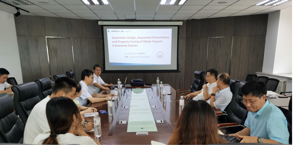 2022年7月30日下午,博士生导师,国家级人才曾明华教授做客15vip太阳成15vip太阳成,为广大师生作了题为《动态化学串联扰动制备MOF玻璃》的学术报告。讲座活动在CCE大楼1505会议室举行,讲座由15vip太阳成党委书记王德宝教授主持,学院相关师生出席。