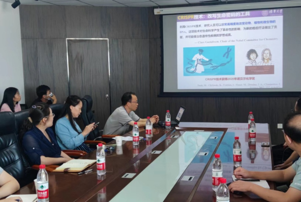 李院士介绍近10年CRISPR技术发展以及课题组在该领域不断深入的研究成果。CRISPR技术获得2020年诺贝尔化学奖,利用该技术研究人员可以非常高精度地改变动物、植物和微生物的DNA,对生命科学产生了革命性的影响,为新的癌症疗法做出了贡献,并可能使治愈遗传性疾病的梦想成真。李院士课题组通过指数扩增,滚环扩增,近边链接等策略,将CRISPR技术与等温扩增技术相结合进行信号放大,实现高灵敏核酸检测与生物传感,满足微量生物样本的检测需求。此外,课题组还采用酶法代替PCR扩增技术,利用便携式试纸实现新冠病毒及其变种的快速检测。该工作具有突破性意义,受到同行的广泛关注。报告引发了师生们浓厚的兴趣,现场多名老师及同学踊跃提问,气氛活跃。通过本次报告会不仅让在座师生对CRISPR技术有了更深入的了解,而且对将生物技术应用于疾病的实际检测提供很好的研究思路,让大家对理论研究与实践的结合更具信心。