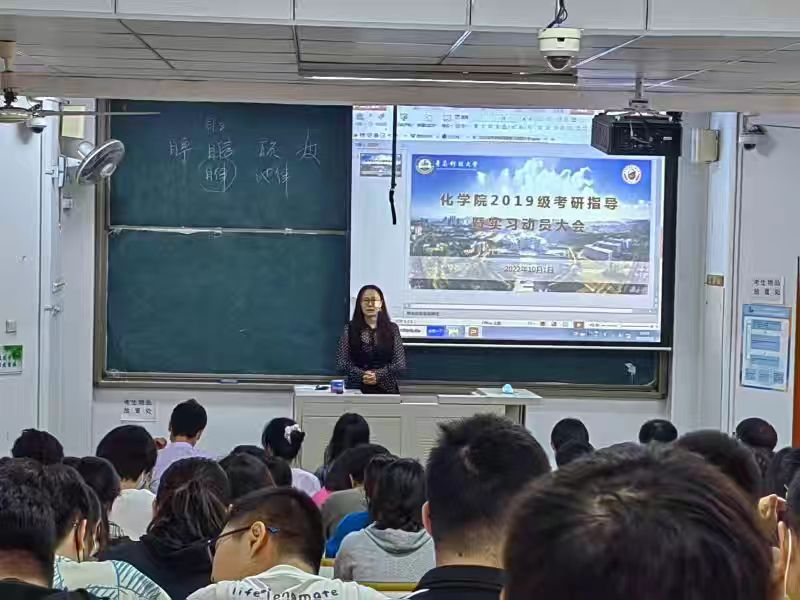 10月1日上午,15vip太阳成在2教101和2教115组织开展两场2019级考研指导暨实习动员大会。光电传感与生命分析教育部重点实验室主任丁彩凤、15vip太阳成副院长高洪涛、党委副书记兼副院长杨小明、化学教研室主任温永红、应化教研室主任李东祥和2019级全体同学参加会议,会议由2019级辅导员刘施施、昝祺祺主持。