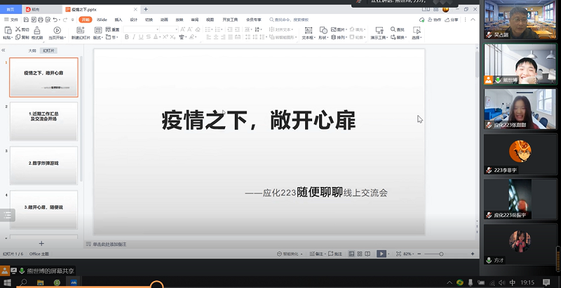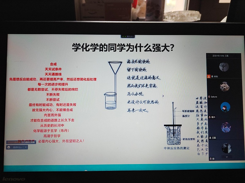 有的班主任通过“化学”专业视角与同学们一起探讨病毒传播机理,有的班主任通过线上游戏纾解同学们由此引起的心理困惑,有的班主任通过讲述自己的考研经历为考研考雅思的同学传经送宝,有的班主任通过自身疫情下生活发生的变化引起大家对于疫情防控政策的理解与支持,有的班主任以“疫情云相聚、老师有话说”与同学们推心置腹话家常。