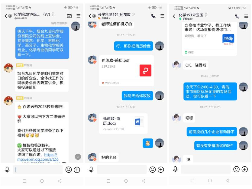为破解毕业生“难就业”“懒就业”难题,学院组织全体毕业生开展7场线上、线下考研和就业指导大会,做到科学分类、精准指导,让毕业生认清当前考研、就业形势,提早谋划、尽快准备。同时,学院邀请已毕业年级中的升学和就业学生代表,从考研志愿选择、复习技巧、求职技巧、简历制作、基层选调等方面提供指导,提高学生就业能力。学院坚持就业指导“以生为本”,精准摸排学生就业状况和实际困难,将毕业学生分类指导,实施“一生一策”定制化服务,分别建立考研帮扶群、就业信息发布群、就业精准帮扶群,通过线上平台有效给备考、择业甚至就业困难学生推送信息累计700余条,包括考研报名时间、招聘信息、简历模板及网签流程等。辅导员针对考研跨考难度大、简历制作困难、面试紧张的同学进行线下一对一指导,尽最大可能帮助学生就业。