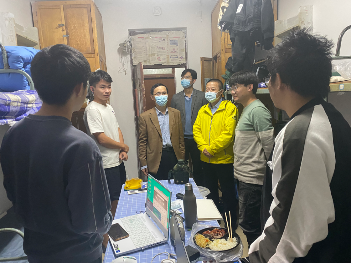 为进一步做好疫情防控常态化阶段学生教育管理和服务工作,11月10日晚上,15vip太阳成党委书记王德宝教授、党委副书记杨小明老师以及大一辅导员王森老师走访新生宿舍和研究生实验室,实地了解学生思想、学习、生活等情况,并为学生送去关心和问候。