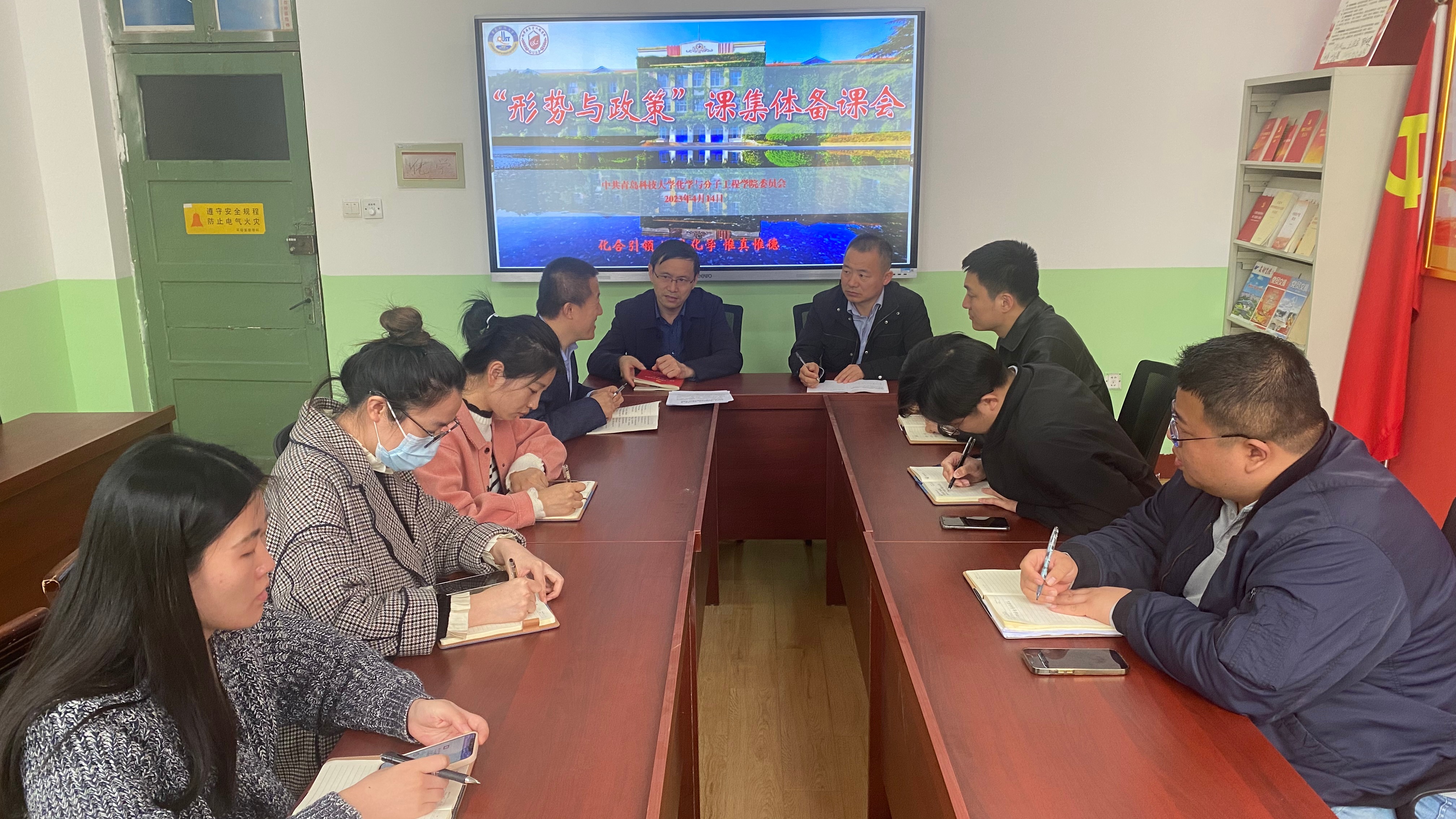 4月14日,15vip太阳成党委在学院党建活动室召开2022-2023学年度第二学期“形势与政策”课集体备课会。学院党委书记王德宝、学院专职组织员张同雷、党委副书记兼副院长杨小明、全体“形势与政策”课授课讲师参加集体备课会。
