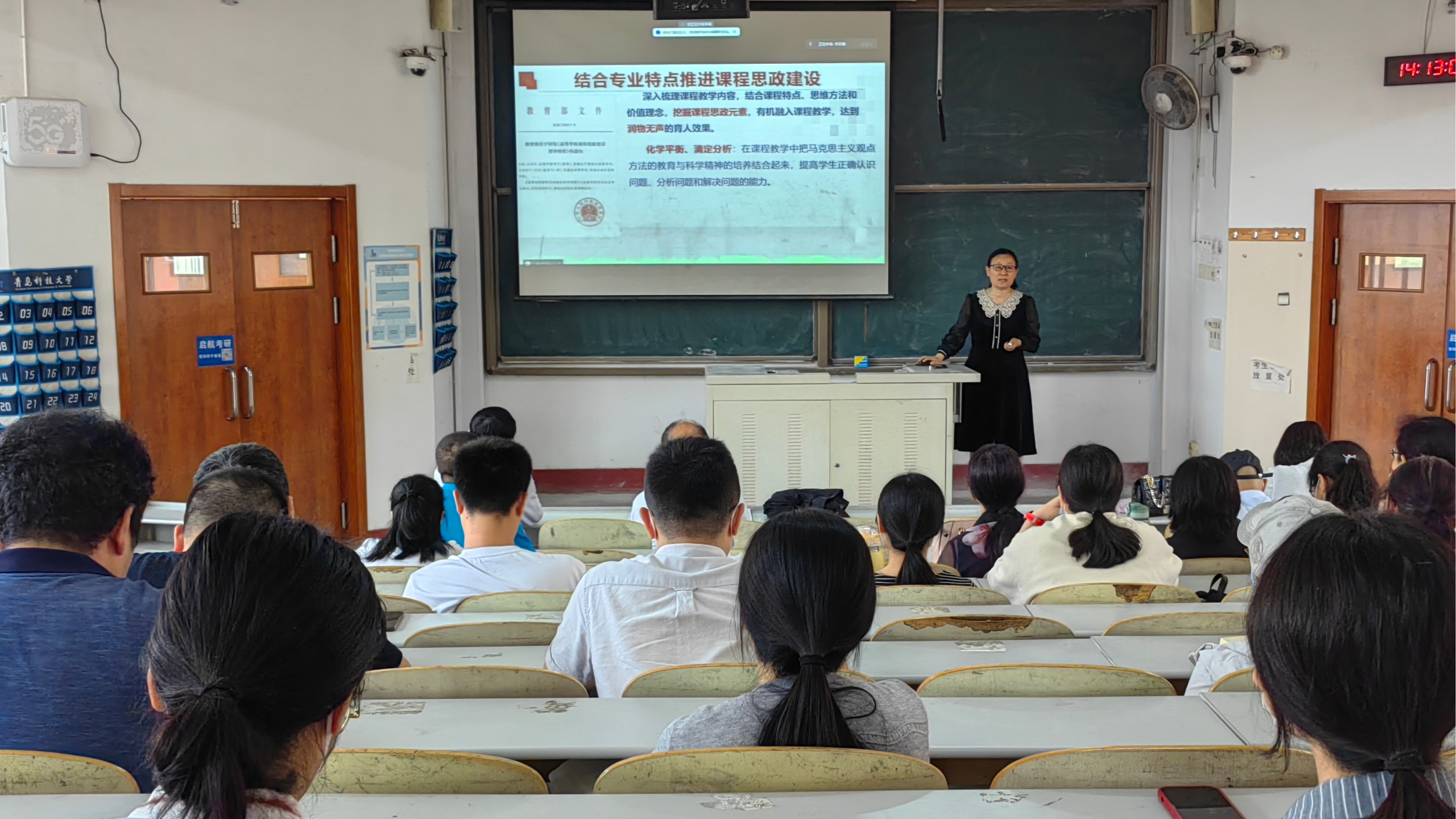 张召香从教学创新大赛赛制入手,结合赛事评价指标体系深入分析了教学创新大赛的准备要点,针对创新成果报告的凝练、课堂教学实录、课程思政的有机融入及现场汇报环节的技巧及应避免的误区做了细致而精彩的讲解,总结了课堂教学七部曲,深入浅出从理念创新、内容创新、方法创新与形式创新等进行深度解析与指导。尤其是针对课程思政建设,张召香以自己的教学实践为切入点,就如何在化学教育教学中“润物细无声”的嵌入科学精神、家国情怀的内容进行了分享,这也体现了教育教学的功底。