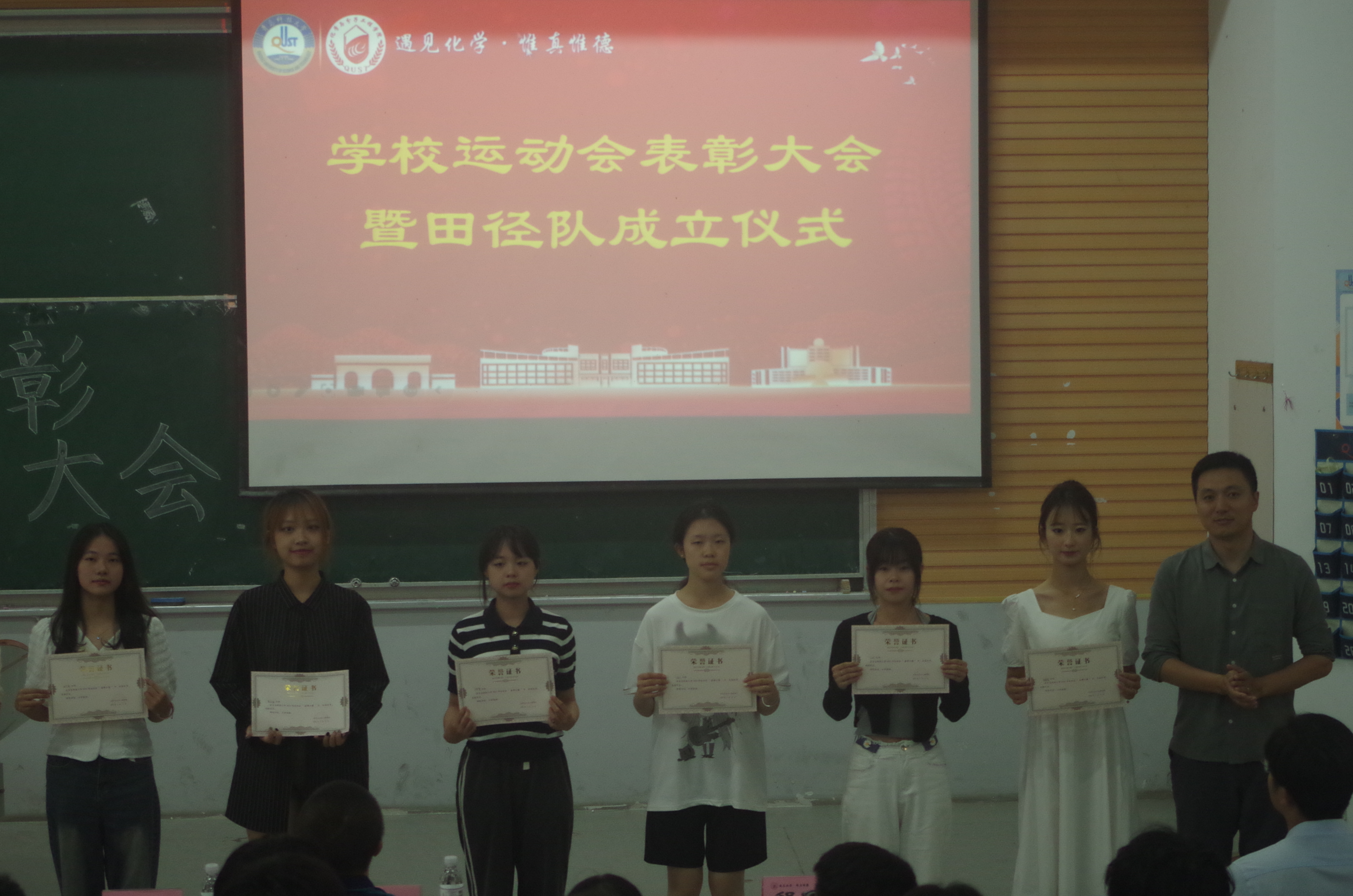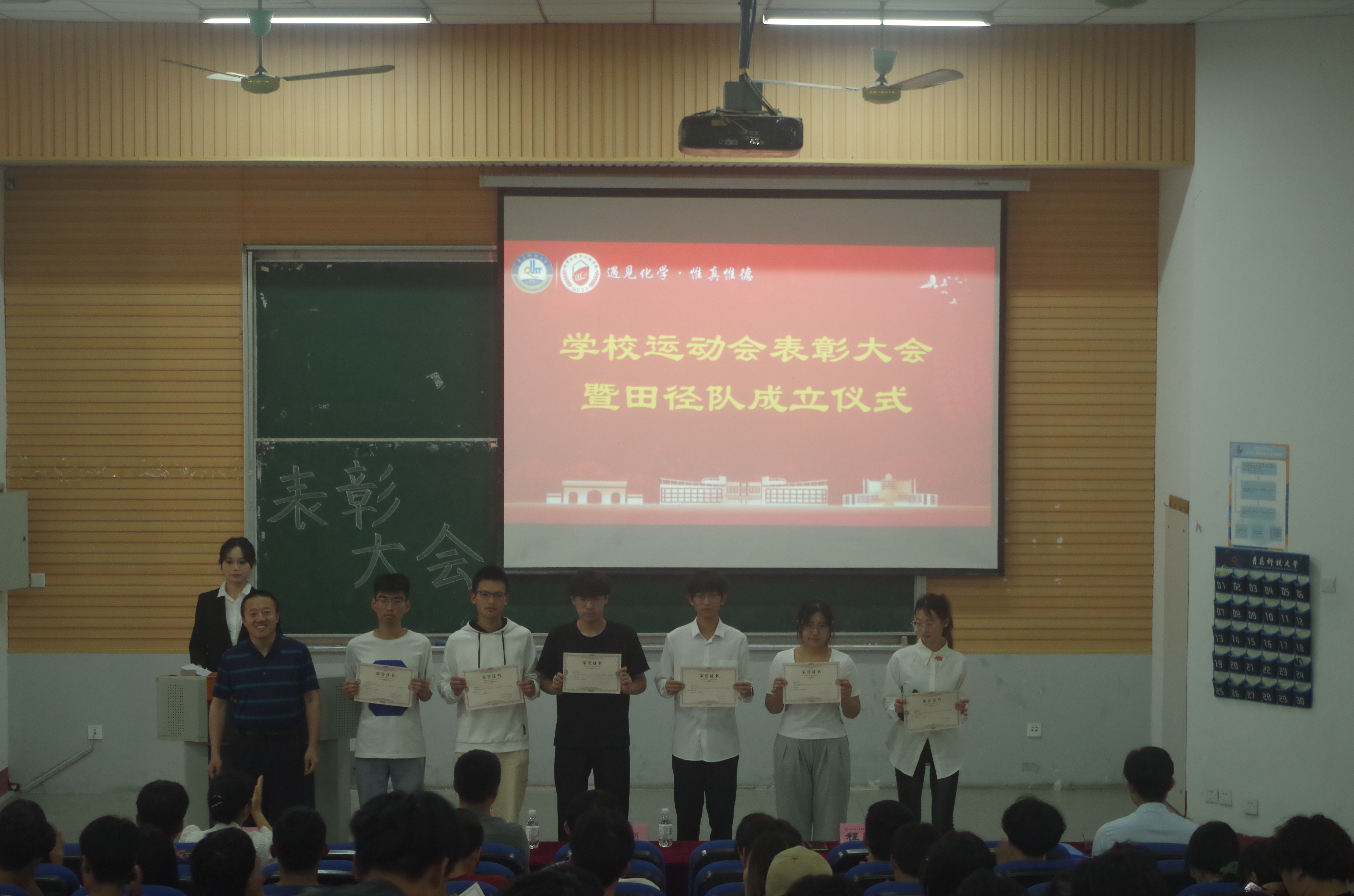 6月6日,15vip太阳成在二教101举行学院学生体育工作表彰大会暨学院田径队成立仪式,学院党委副书记兼副院长杨小明、学院团委全体辅导员及学生骨干代表、获奖学生代表参加会议。
