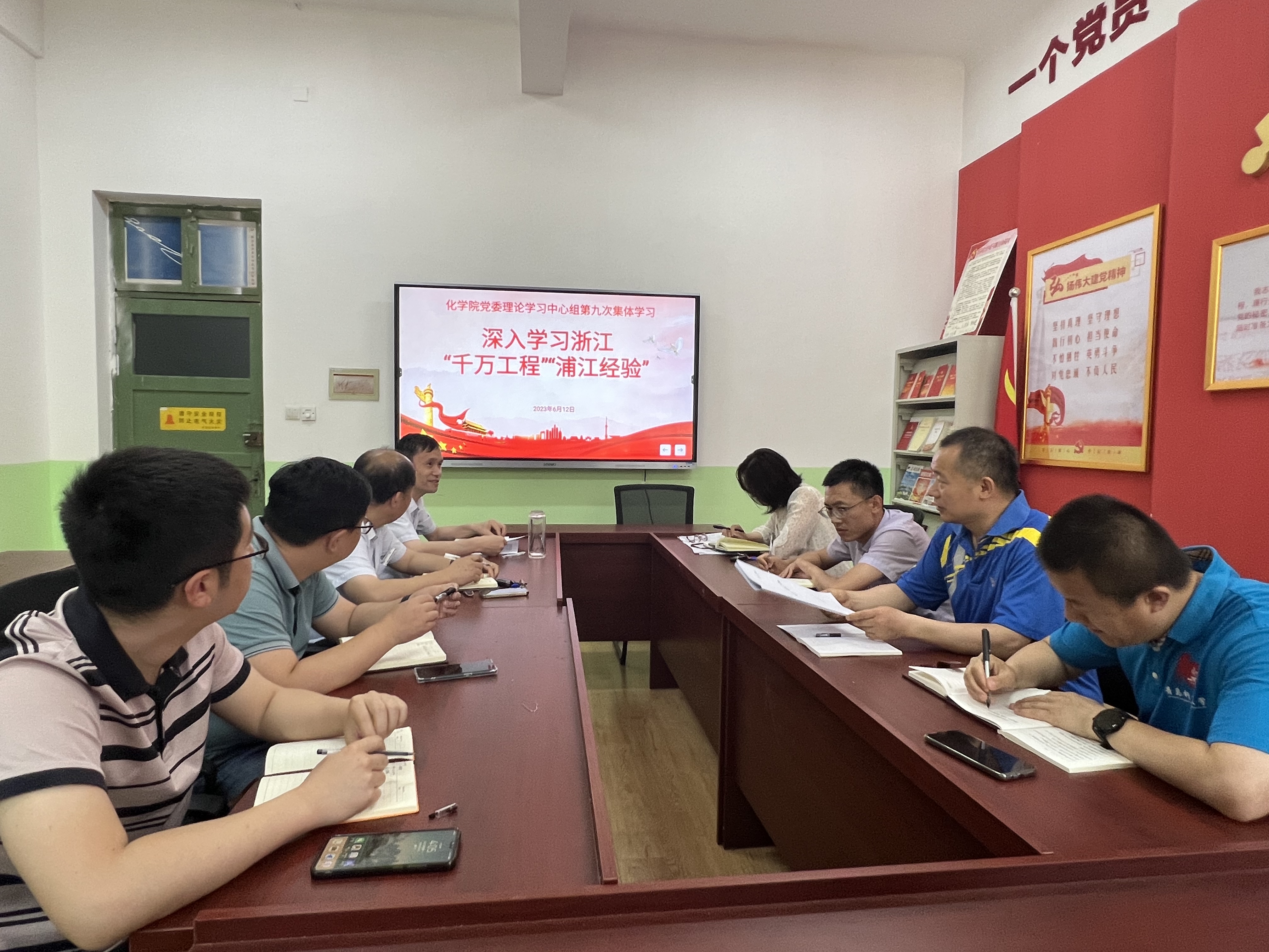 6月12日,学院党委理论学习中心组(扩大)在学院党建活动室组织2023年第九次集体学习,学院党委书记王德宝主持学习。会议原汁原味专题学习关于“千万工程”和“浦江经验”学习材料,并对学院党委如何运用“千万工程”和“浦江经验”蕴含的工作方法持续推进主题教育工作进行讨论,切实把学习成效转化为解决问题、促进工作、推动发展的强大动力。学院党委理论学习中心组成员参加学习。
