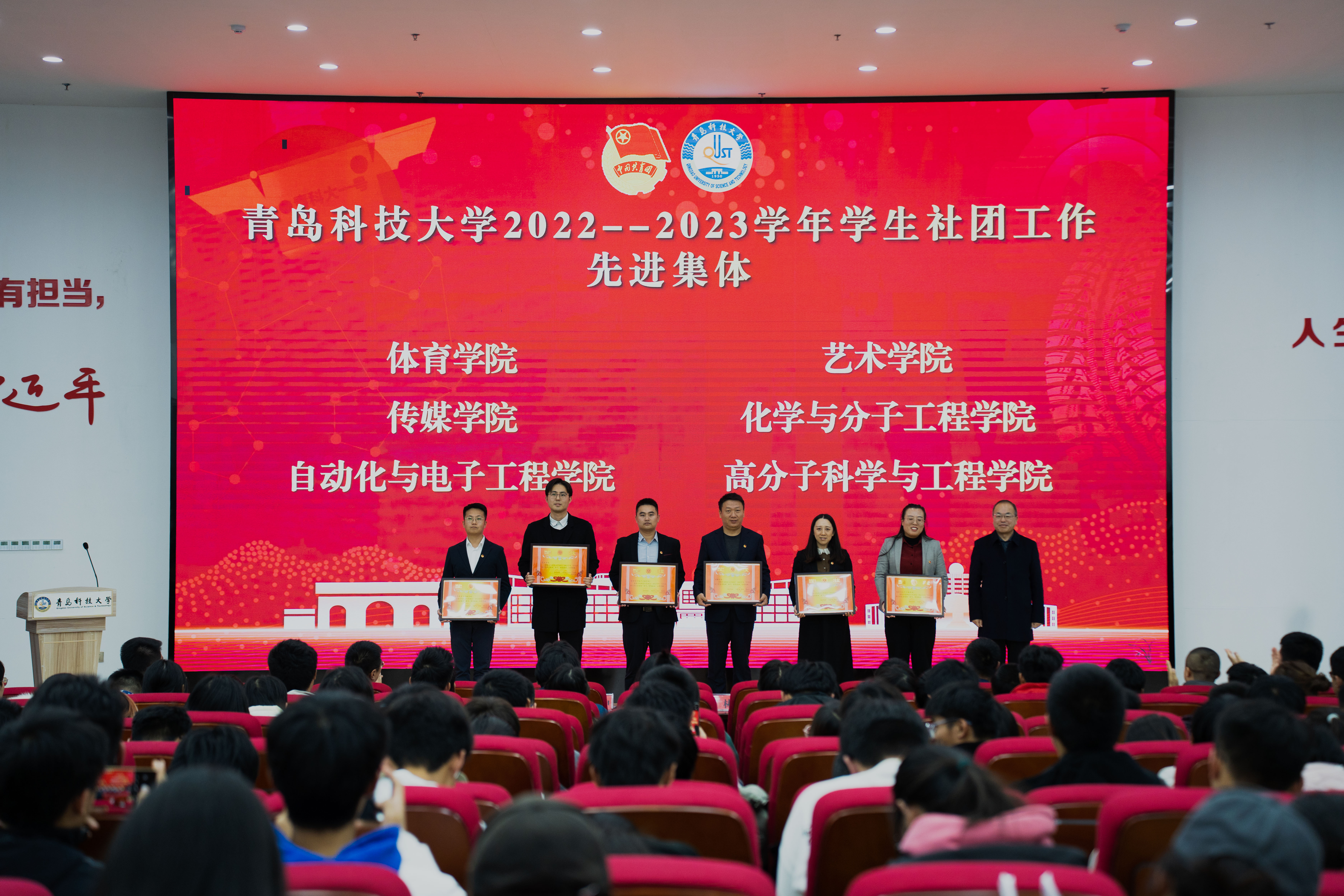 会上,学院荣获“2022--2023学年学生社团工作先进集体”荣誉称号,学院社团指导老师王森荣获“学生社团优秀指导老师”荣誉称号,学生社团负责人孙铷浠、刘雨欣获“学生社团工作先进个人”荣誉称号。