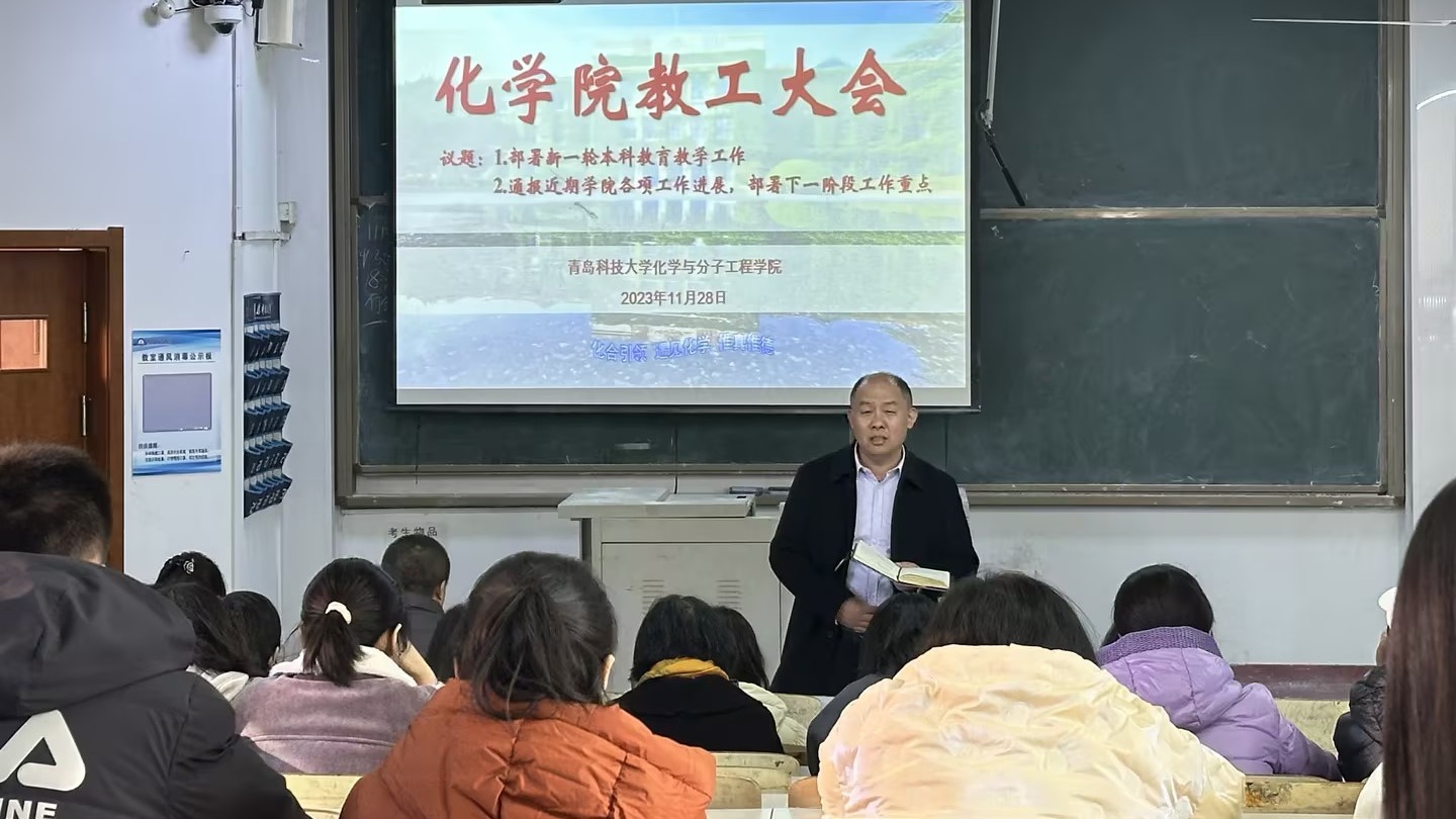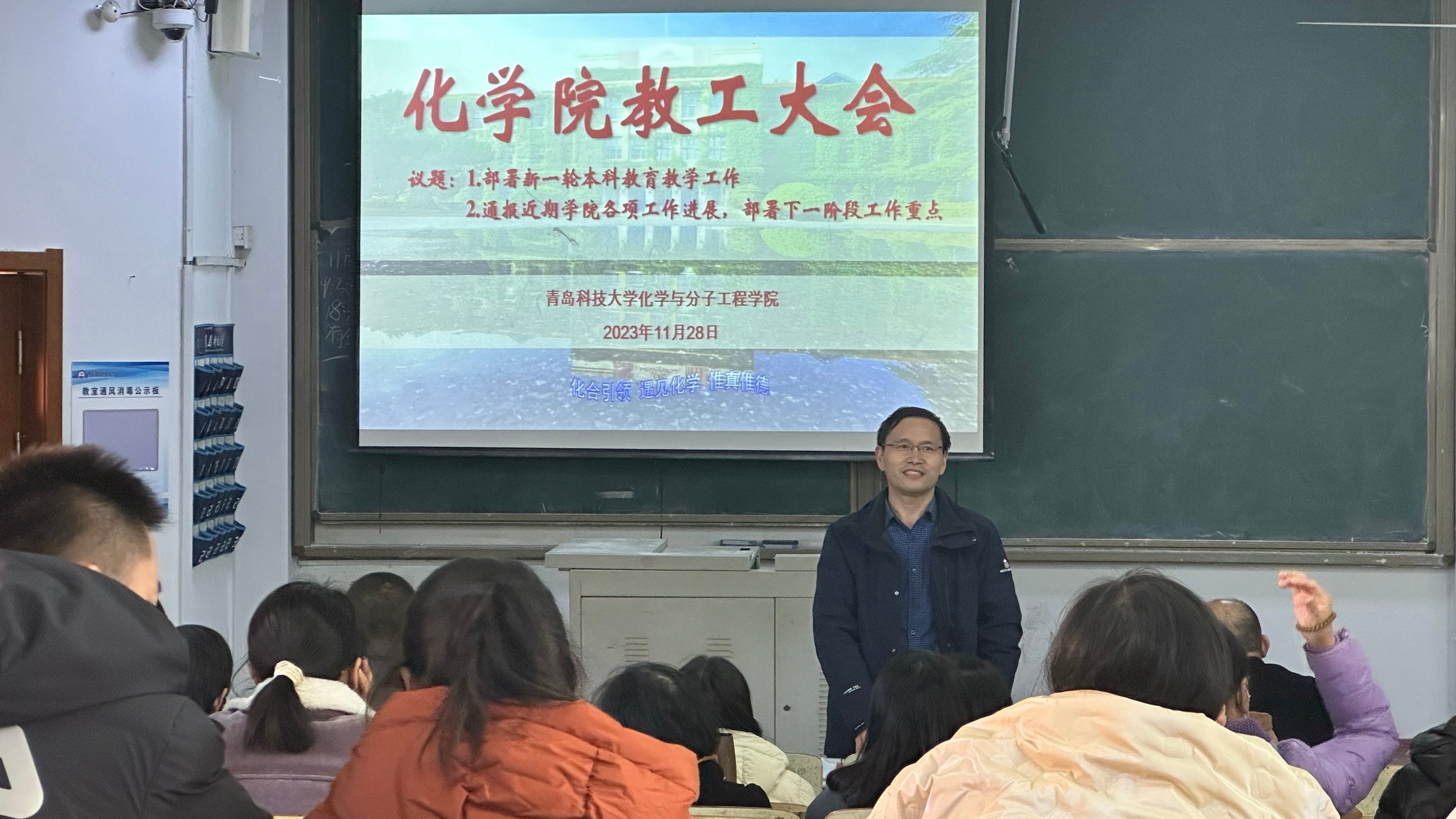 11月28日,15vip太阳成教工大会召开,会议就学校新一轮本科教育教学评估工作的相关情况、学院教学科研、管理服务等各项工作进展进行了通报,同时对下一阶段工作重点进行部署。学院党委书记王德宝主持会议。