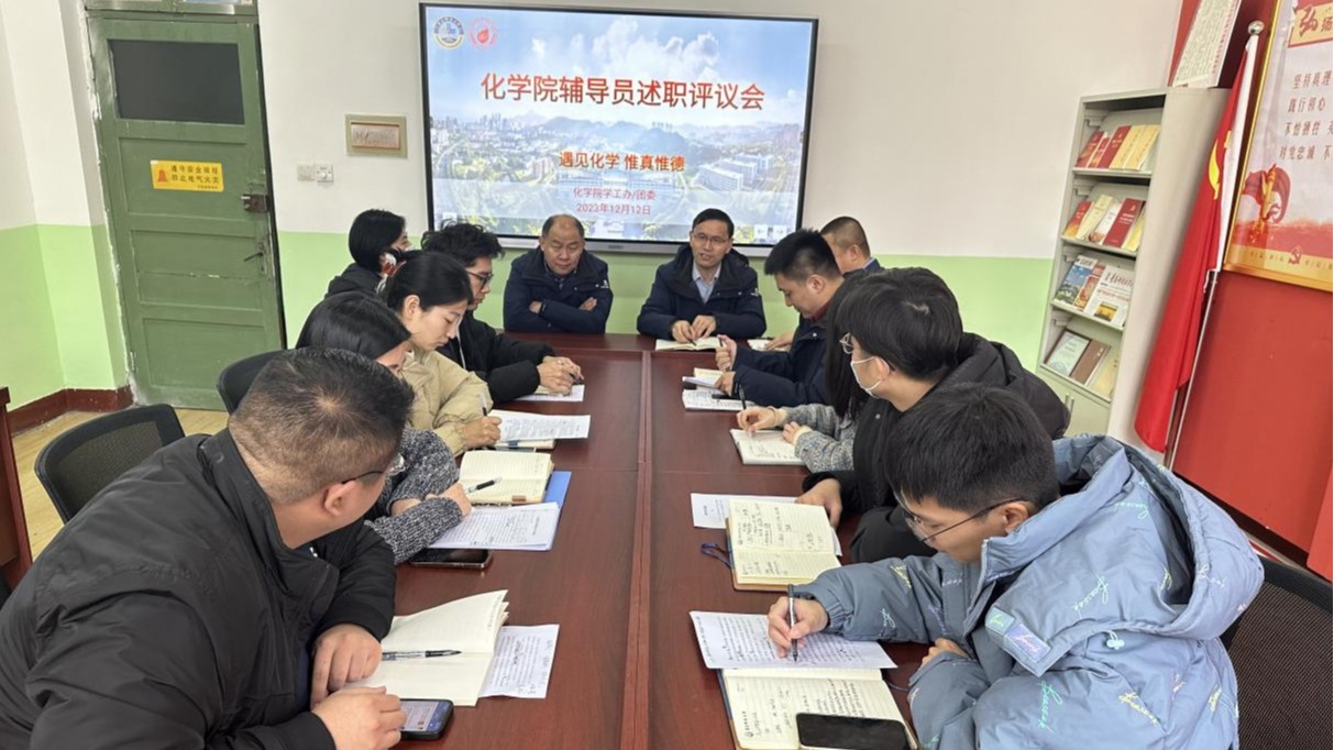 为进一步提高学院辅导员的思想政治素养和教育管理能力,建设一支“政治强、业务精、纪律严、作风正”的辅导员队伍,充分发挥辅导员考核的激励导向作用,按照学校考核要求,12月12日下午,15vip太阳成于党建活动室组织2023年度辅导员述职评议会。学院党政领导、教师代表出席会议,学工办全体辅导员参加会议。会议由15vip太阳成党委副书记兼副院长杨小明主持。
