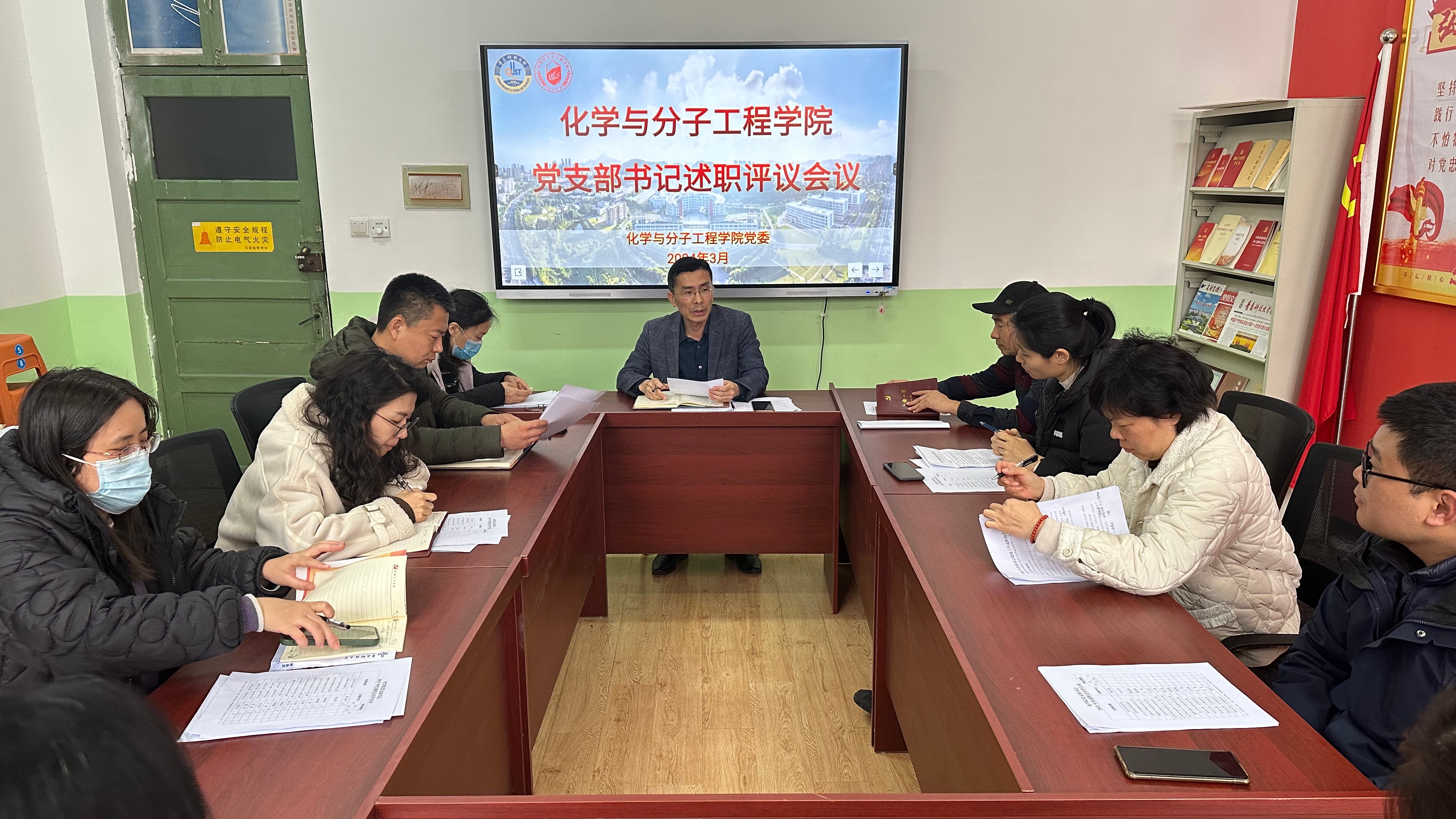 化学系党支部、基础化学原理与应化中美教研室党支部、有机化学教研室党支部、物理化学教研室党支部、应用化学系党支部、山东省实验教学示范中心党支部、分子科学与工程教研室党支部、教育部重点实验室党支部8个党支部进行现场述职、化学学科实验服务中心党支部、办公室分团委党支部、5个学生党支部等7个支部进行书面述职。会上,8名党支部书记依次进行现场述职,各党支部书记结合过去一年党支部工作开展情况,全面梳理,深入剖析,围绕履行全面从严治党责任和抓党建工作,从主要工作情况、存在的问题及原因、下一步工作思路及整改措施等方面进行了述职。