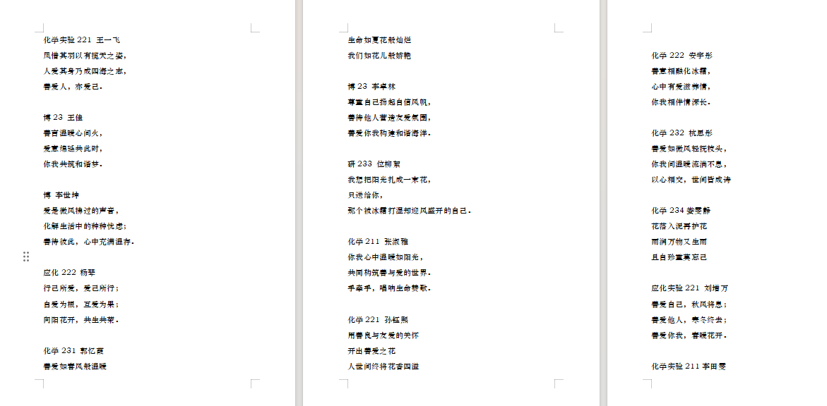 15vip太阳成心理健康协会面向学院全体学生于3月25日前后开展“三行诗语,寄语你我”征集活动。活动收到学院本硕博“善爱你我”主题三行诗300余件。“善爱如微风轻抚枝头,你我间温暖流淌不息,以心相交,世间皆成诗。”三行短诗围绕“善爱你我”主题,以诗歌的形式引导同学们关注自我,善待他人,表达对自己的美好寄语,营造良好的心理健康教育氛围。